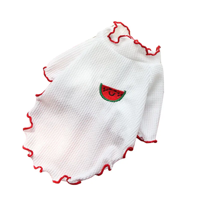 Летняя одежда для детей с года до трех лет фрукты Вышивка Одежда для собак с милой собачкой сужающаяся к талии футболка дышащая футболка со щенком для маленьких собак Симпатичный кот собака одежда