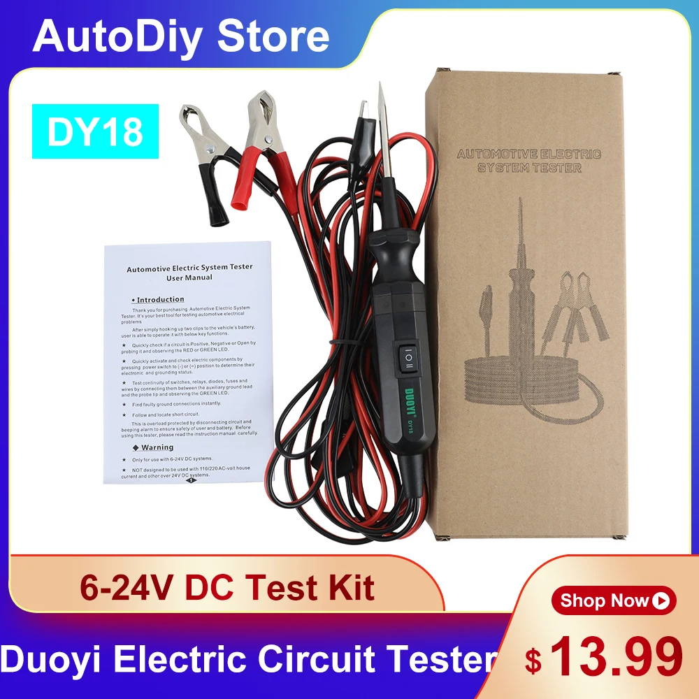 Диагностические инструменты Duoyi DY18, автомобильный комплект для проверки электрической цепи, 6-24 В постоянного тока, длинный кабель
