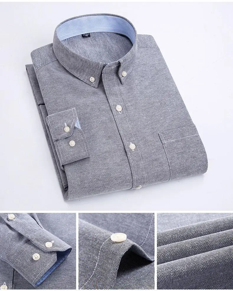 Мужская Повседневная рубашка из ткани Оксфорд, белая однотонная рубашка с длинными рукавами, воротником на пуговицах, Осень-зима 2019