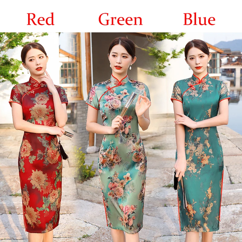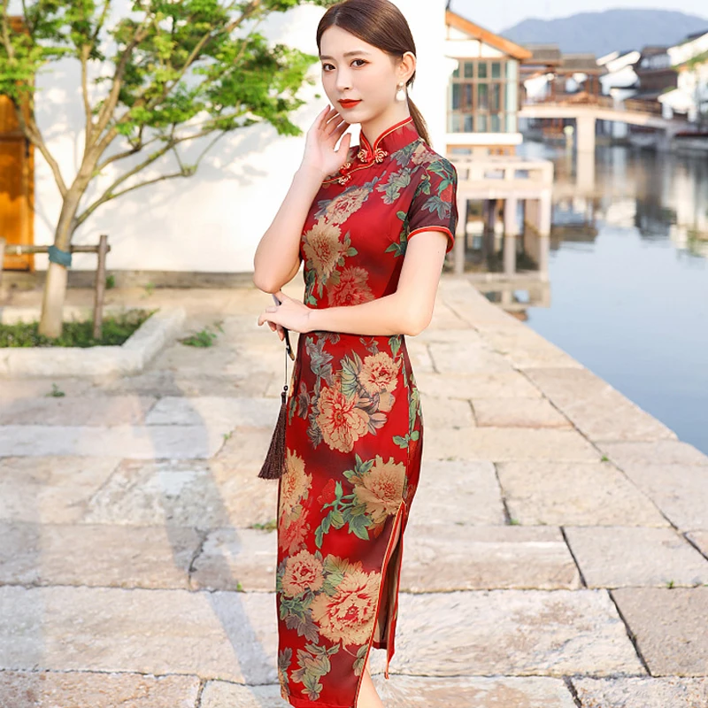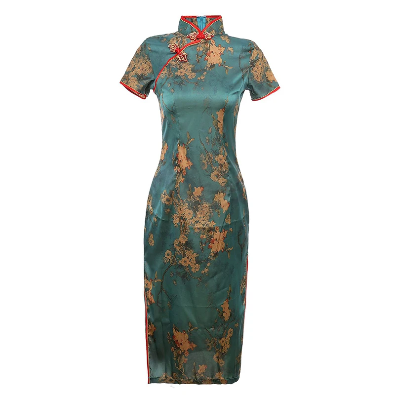 Размера плюс 4X Мода в китайском стиле для женщин китайское традиционное платье средней длины с цветочным принтом китайское платье-Ципао, платье чонсам