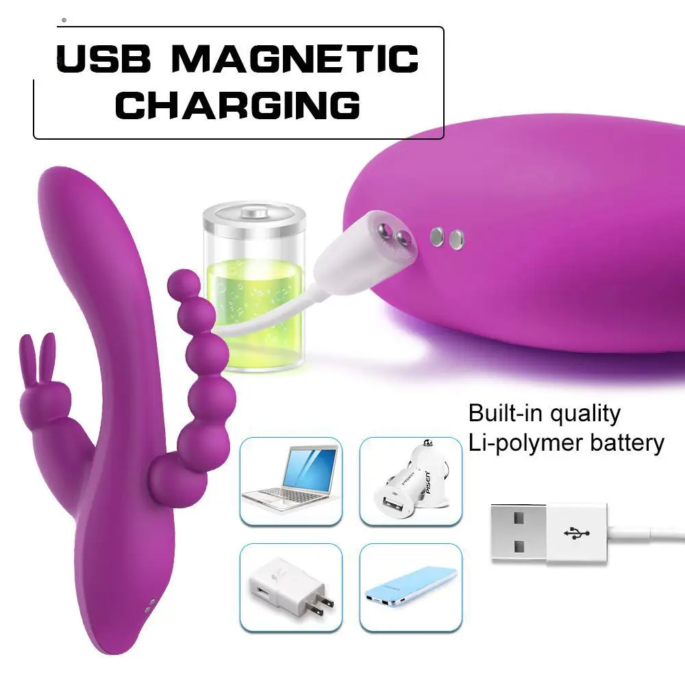 Вибратор-кролик 3 в 1, фаллоимитатор с USB, магнитный перезаряжаемы...