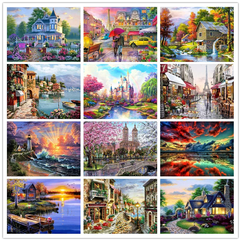 Алмазная живопись с изображением пейзажа, сада, дома, новинка 2021,...