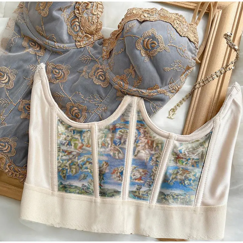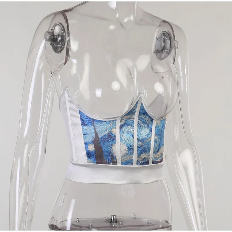 2021 летний винтажный лоскутный корсет с принтом рыбьей кости, топ Y2K, летний женский сексуальный уличный корсет, вечерние наряды