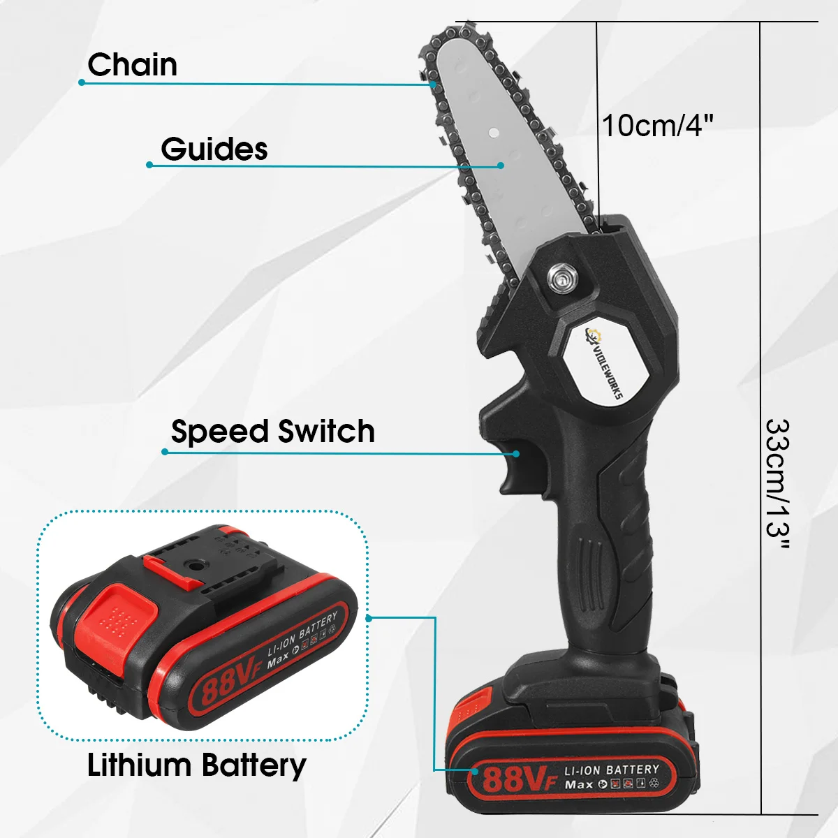 88VF 2 в 1 беспроводная цепная пила секаторные ножницы для резки ветвей ножницы для деревообработки(1)88VF электрическая Беспроводная цепная пилаСпецификация:Бренд: VIOLEWORKSМатериал: металлическая стальная цепьНапряжение: 88VFЦвет: черныйМощность аккумулятора: 1080 ВтДлина направляющей пластины: 4 дюймаСкорость цепи: 5 м/сЭлектрический привод: Сильный магнитный двигательЦепь: быстрая регулировкаРазмер резки: <100 ммАккумулятор: 7500 мАчОсобенности:-Практичный, быстрая скорость, низкое энергопотребление.-Двигатель из чистой меди, высокая мощность, быстрая резка, повышение эффективности.-Высококачественный переключатель, быстрая и медленная регулировка, плавное изменение скорости.-Высококачественная направляющая пластина, глубокая закалка, более износостойкая, гладкая резка.-Перезаряжаемая Электрическая цепная пила светильник и портативная, долгий срок службы батареи, без повреждения коры.Светильник корпус светильник и удобный светильник дизайн, долгое время держит и не устает руки.-Интеллектуальный плата управления цепью, защита от перегрузки, для удовлетворения различных потребностей в строительстве.-Управление одной рукой: небольшой размер, можно удерживать одной рукой. Вес мини-бензопила всего около 0,7 кг и общая длина всего 33 см (13 дюймов).-Специальная направляющая пластина, шарик из вольфрамовой стали смазывать не нужно, так что машина снижает сопротивление во время работы и снижает износ машины.(2)88VF электрические беспроводные секаторыСпецификация:Бренд: VIOLEWORKSНапряжение: 88VFЦвет: черныйОсновные материалы: ПВХ + металлПиковая мощность: 500 ВтМакс. Резка: 30 ммРабочая температура: -10 ℃ ~ 60 ℃Аккумулятор: 7500 мАчОсобенности:-Эргономичная и удобная ручка.-Низкий уровень шума, хорошая устойчивость к усталости.-Прочное Лезвие из вольфрамовой стали.-Перезаряжаемая литиевая батарея большой емкости для беспроводного использования.-Качество обрезки может соответствовать требованиям садоводства.-Беспроводные перезаряжаемые секаторы для резки и обрезки веток в фруктовых садах, виноградниках.-Гибкий в использовании, легко поворачивается, безопасный и надежный, простой в обслуживании, удобный для замены аккумулятора и эксплуатации.(3 посылка1 Электрическая цепная пила1 секатор2 х батареи1 зарядное устройство3 x гаечный ключ1 отвертка1 x бутылка для смазочного масла2 x Руководство пользователя1 х пластиковая коробка