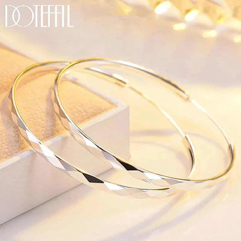 Женские круглые серьги-кольца DOTEFFIL, из стерлингового серебра 925 пробы с узором 3550 мм, бижутерия для помолвки и свадьбы