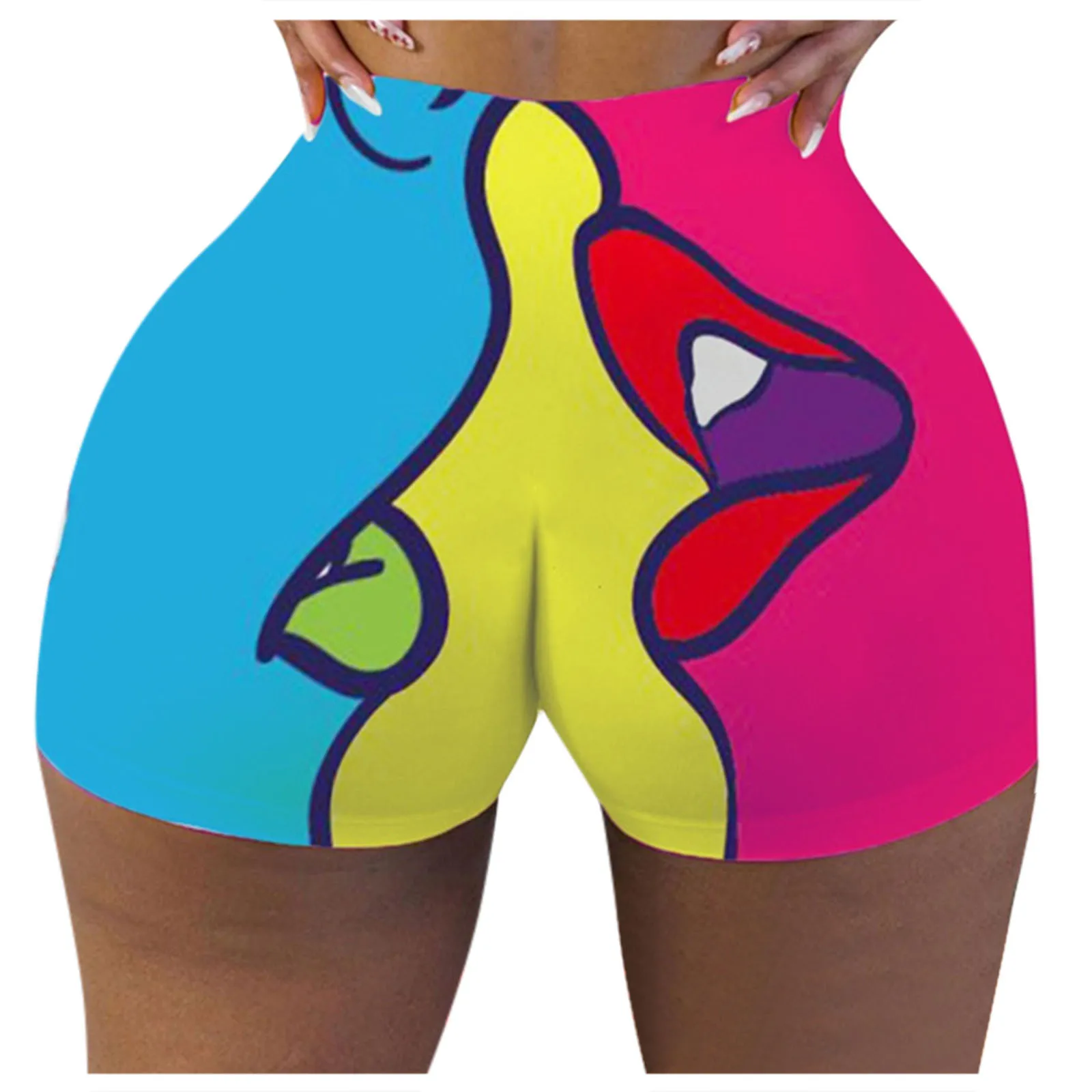 Недорогие Женские шорты с аниме-рисунком, летняя пляжная Женская одежда, спортивные шорты с высокой талией, шорты для тренировок