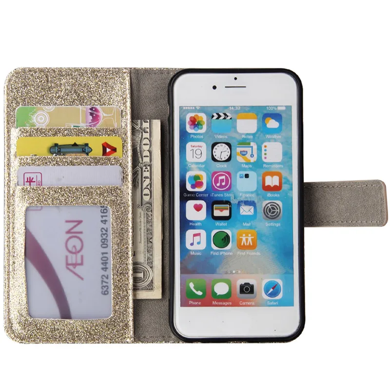 Блестящий женский чехол-кошелек, кожаный чехол-книжка с подставкой ...
