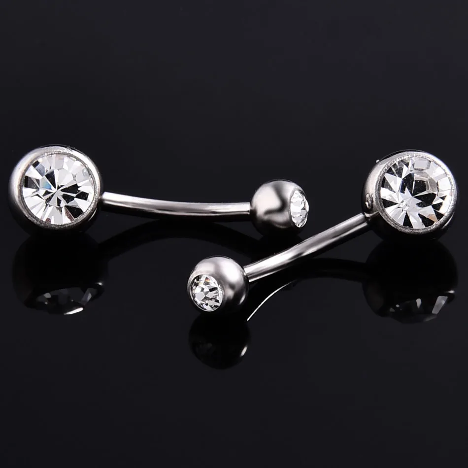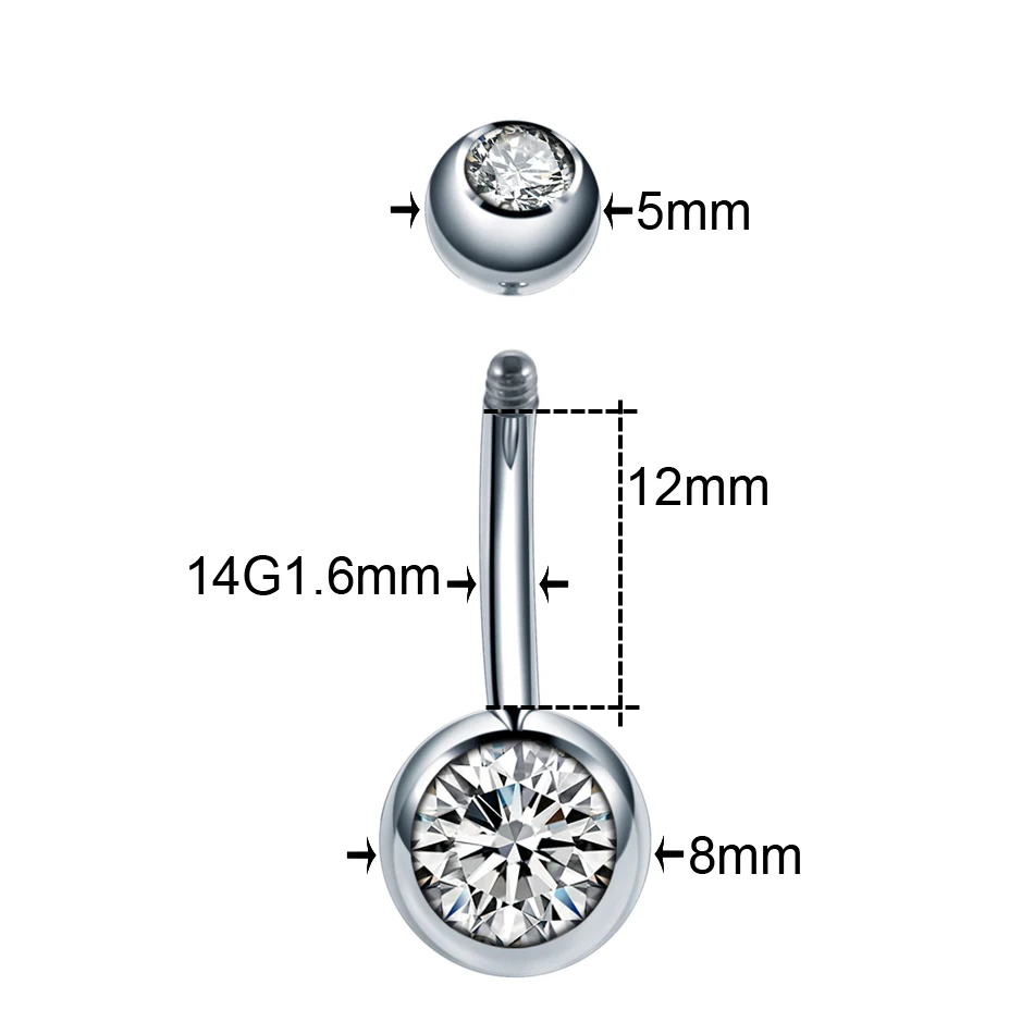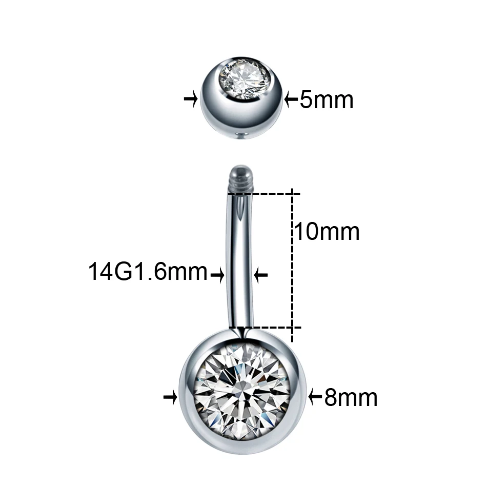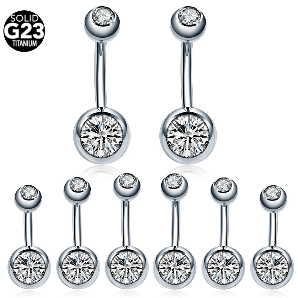 1 шт. 14 г ASTM-F136 имплантат титановое кольцо для пупка двойной CZ драгоценный камень Пирсинг живота кольцо с наружной резьбой пупка кольца