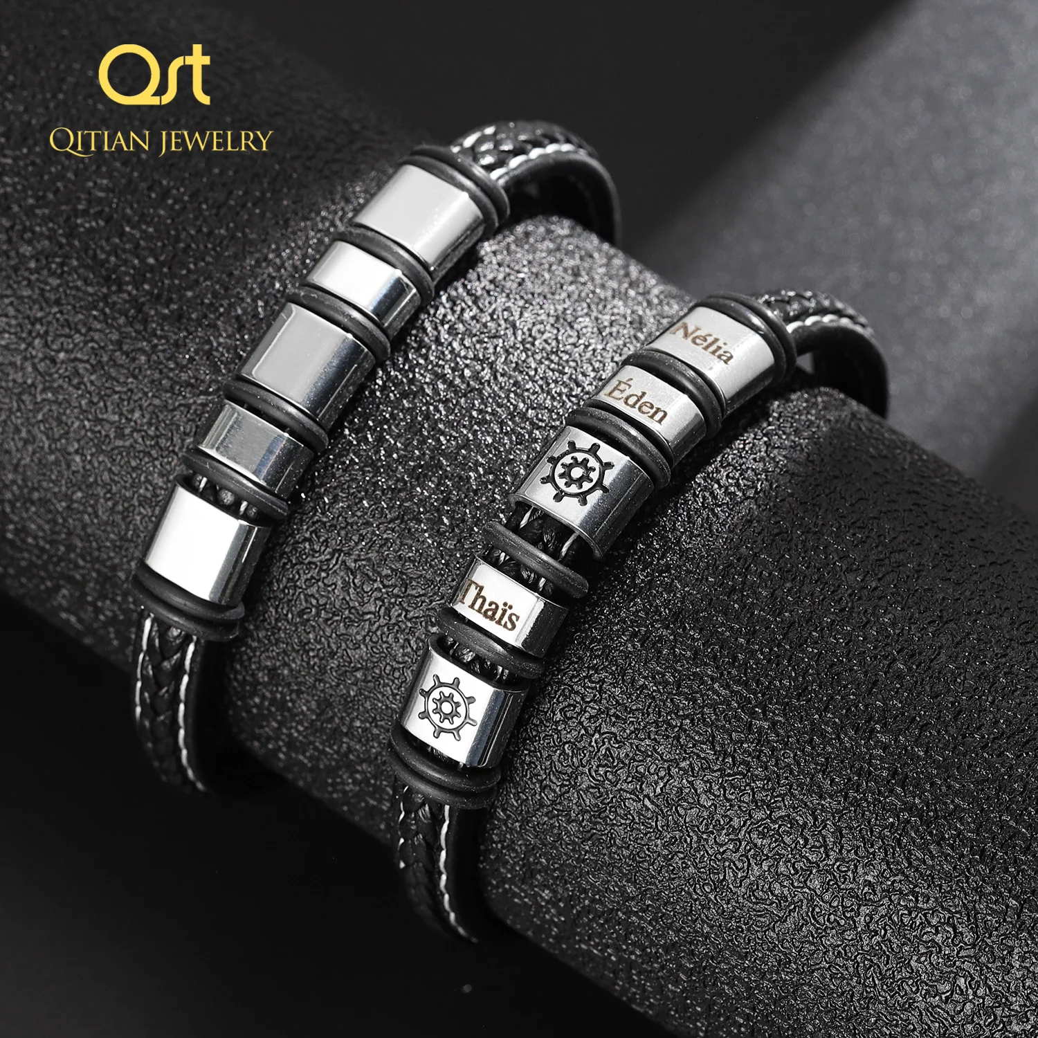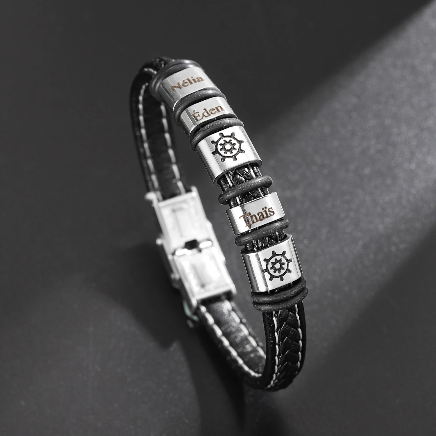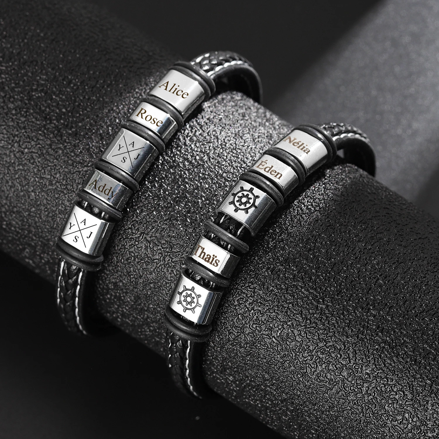 Мужской браслет из натуральной кожи, с гравировкой имена на заказ, ...