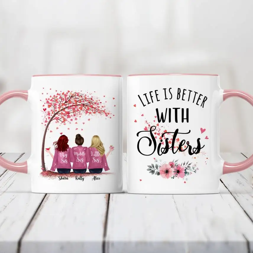 Персонализированная кружка, красочная жизнь лучше для сестер, любовь, дерево, до 6 кофейных чашек RR2084