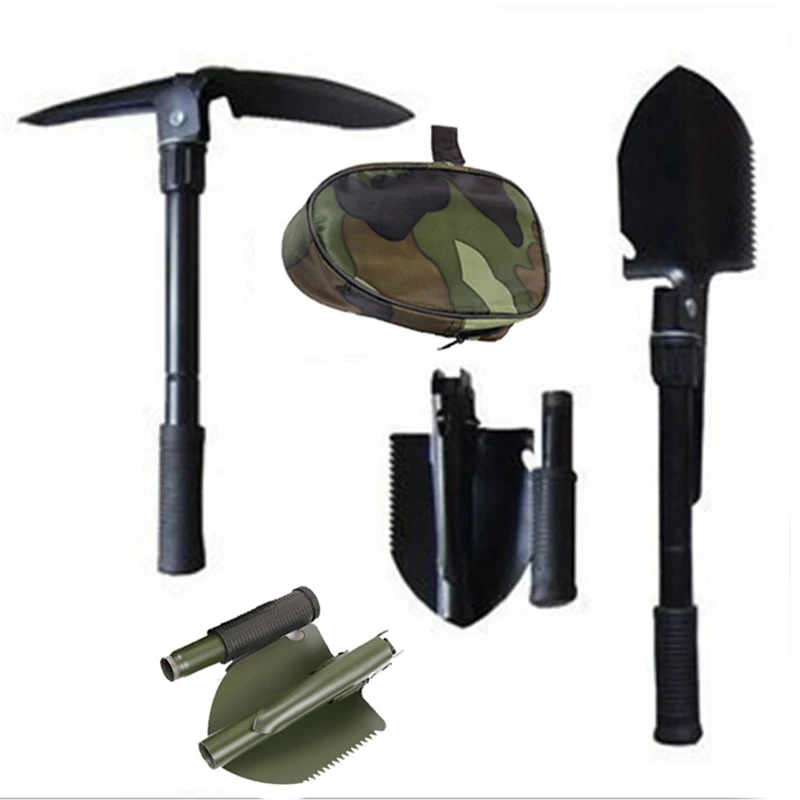 Особенности: складной, маленький размер и легко носить с собой. В конце-лопата и Кирка. Он может быть согнут и сложен, а ручка может быть горизонтальной и вертикальной. Это обязательно для кемпинга на открытом воздухе.