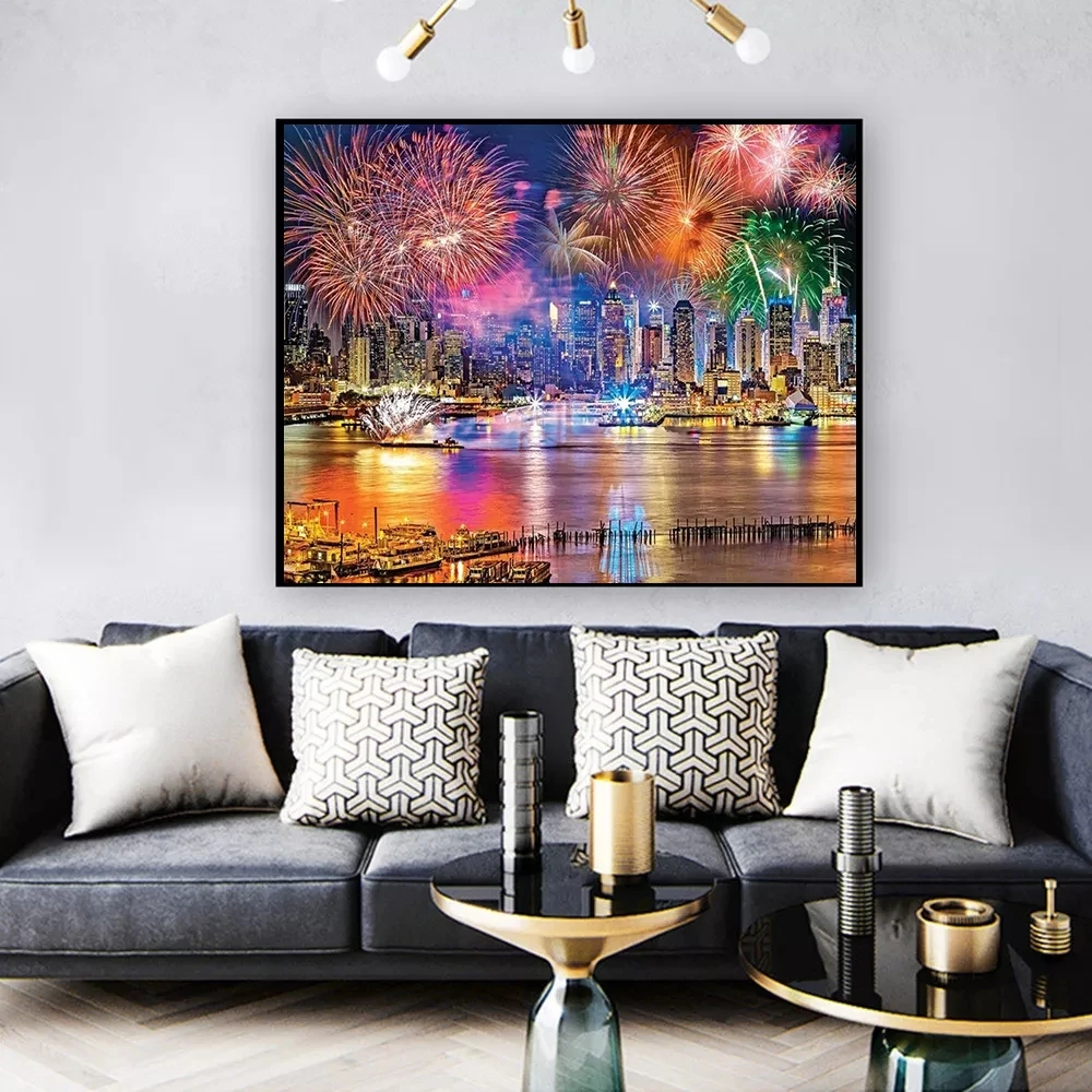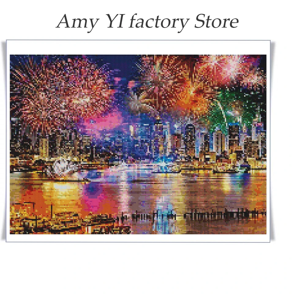 Бриллиантовая живопись AMY-DIY 5d, город, полная квадратнаякруглая Алмазная вышивка, пейзаж, мозаика, река, украшение для дома