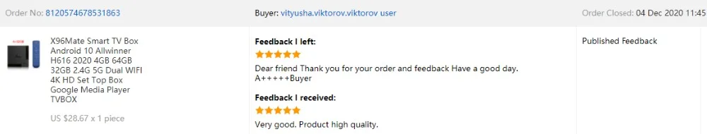 【ANDROID 10,0 OS】: Этот ТВ-бокс оснащен новейшей системой Android 10,0, имеет больше новых функций, таких как новая темная тема Android, используйте настоящий черный цвет, чтобы ваш аккумулятор был в живых дольше, легко ложитесь на глаза. Храните ваши данные в приватном режиме с большим количеством элементов управления, чтобы вы могли спокойно отдыхать.【 4 Гб RAM 32 ГБ/64 Гб ROM】: Android tv box разработан с 4 Гб оперативной памяти и 32 Гб/64 ГБ ROM, что дает ему большую емкость. Вы можете загружать больше приложений, хранить больше фильмов, чем раньше, и вам не следует беспокоиться о том, что у вас не будет места. Скорость Гонки также намного лучше, чем у других ТВ-боксов. Вы также можете добавить дополнительный жесткий диск, tf-карту для расширения памяти.【Мощный чип Allwinner H616 】 X96 Mate Android TV BOX питается от чипсета H616, он лучше при обработке изображений, обеспечивает пользователям большой опыт сверхбыстрой скорости работы и профессиональной обработки изображений. Что делает его работать быстрее и прочнее, чем другие ТВ-коробки.【 3D 4K UHD H.265 】: Поддерживает выход H.265 4K, более мощный, чем H.264, позволяет смотреть фильм 4K гладко, и каждая деталь экрана глянцевая, приносит вам более реальные фильмы, игры и музыкальный опыт. Поддержка воспроизведения 3D видео дает реалистичный вид.【 2,4 ГГц/Wi-Fi 5 ГГц WI-FI 100 м 】: Оснащен двумя 2,4 ГГц/Wi-Fi 5 ГГц Wi-Fi и BT 4,0, совместимый с 10/ 100M Ethernet LAN. Мы предлагаем удобное подключение и более стабильный WIFI сигнал, чтобы наслаждаться более высоким качеством видео. Просто подключите источник питания, подключите кабель HDMI и Wi-Fi/Ethernet, вы можете смотреть все, что вам нравится.Посылка включает в себя: