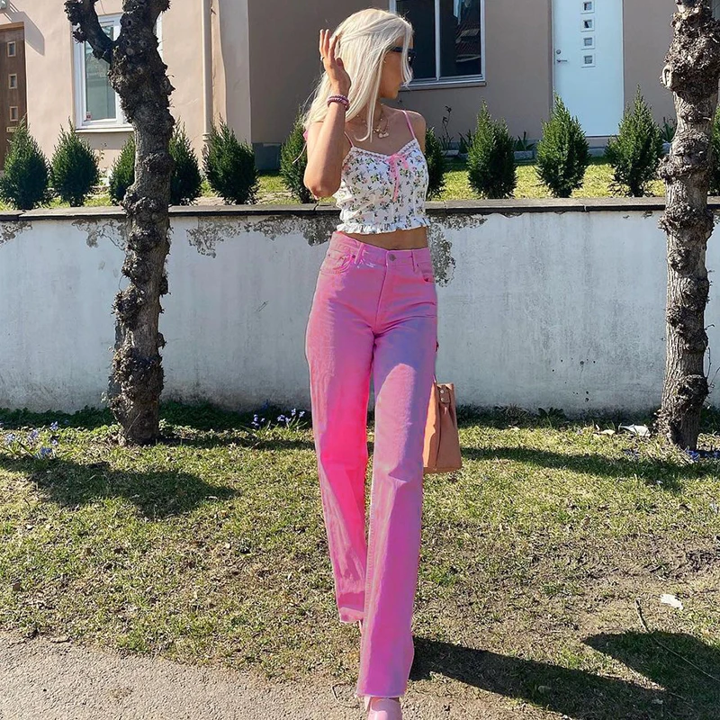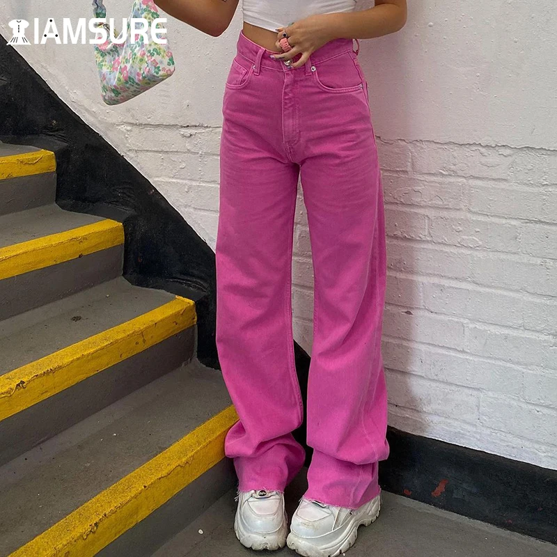 Повседневные свободные джинсы IAMSURE в стиле Харадзюку с карманами и высокой талией, брюки с широкими штанинами, женские модные милые уличные штаны 2021