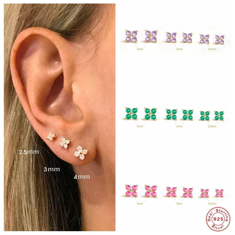 925 стерлингового серебра Красочные Циркон Сакура серьги-гвоздики в виде цветка для женщин 2,5/3/4 мм крошечные с украшением в виде кристаллов Floret шпильки ювелирные изделия