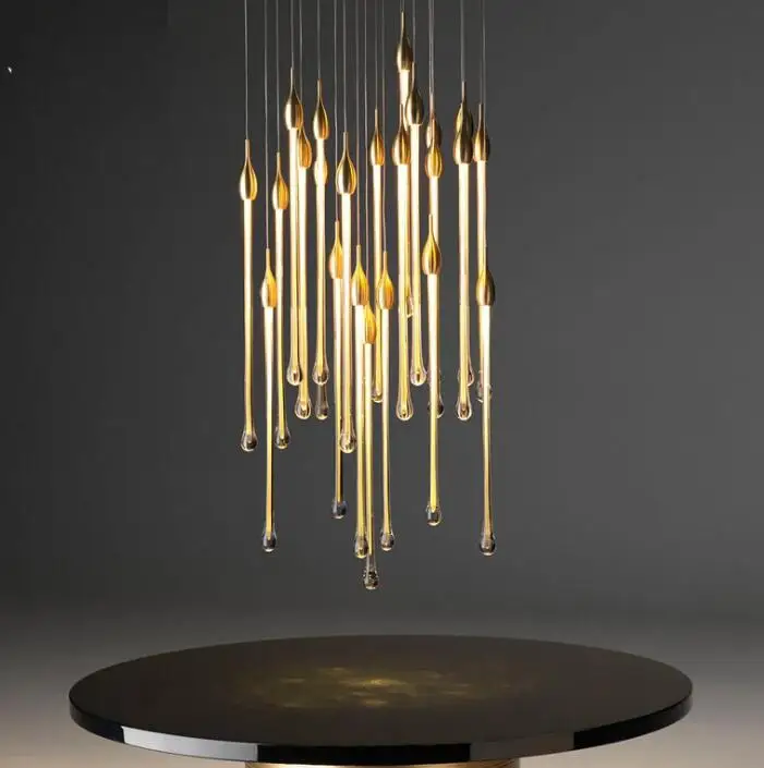 Хрустальный креативный подвесной светильник в виде капли воды, роскошные светодиодные лампы в Европейском стиле, стеклянсветильник комнатное освещение, освещение для ресторана, золото