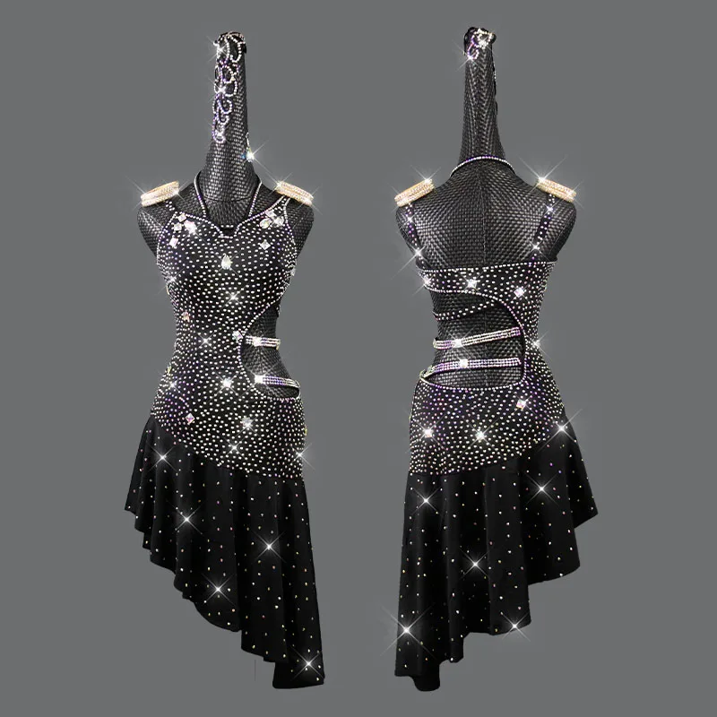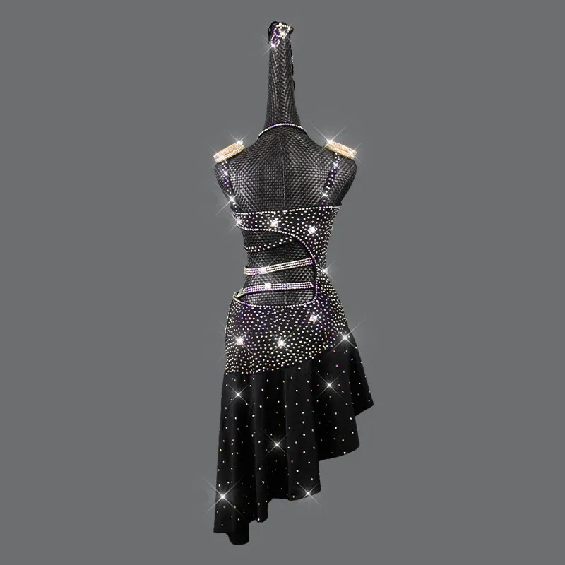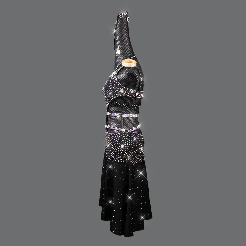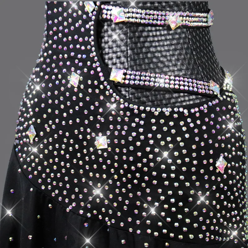 Расширенный латинские танцы Конкурс юбка для танцев черного цвета для взрослых с пикантные Стандартный Латинской Танцы платье Леди Румба Самба танец платья