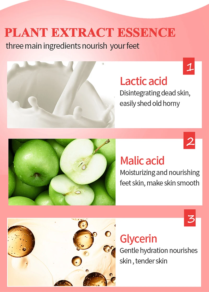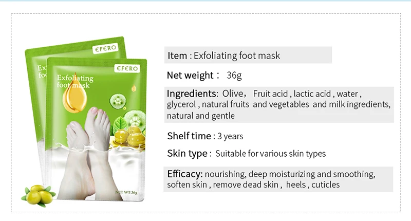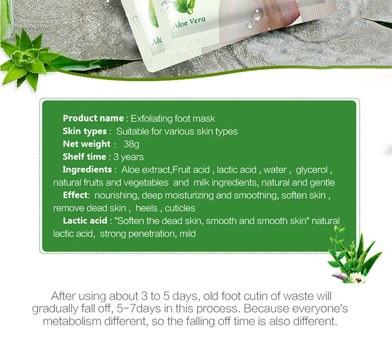 Описание:-Новый высокое качество-Мягкая очищающая, увлажняющая вода-Отшелушивающие Твердые старые мозоли и омертвевшая кожа-Помогает улучшить сухость ног, огрубевшую кожу и загар-Улучшает мягкость и гладкость кожи ног-Увлажняет кожу, делая кожу упругой и упругой-Герметичный дизайн, двухслойная пленка для одежды, легко впитывается-Эффективность: отбеливание, отшелушивание, увлажнение, питаниеПосылка включает в себя:1 пара = 1 упаковка = 2 маски для ногПримечания:-После использования около 3-5 дней, старая лапка отходов будет постепенно отваливаться, 5-7 дней в этом процессе. Потому что метаболизм у всех разный, поэтому время отваливания также разное.-Из-за разницы между различными мониторами, фотографии могут не отражать фактический цвет изделия.