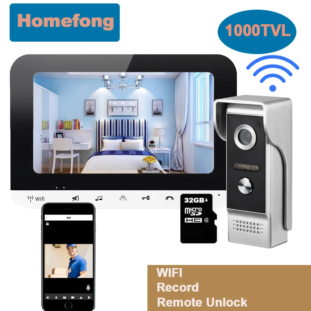 Видеодомофон HomeFong, 7 дюймов, Wi-Fi, дверной звонок, камера, бес...