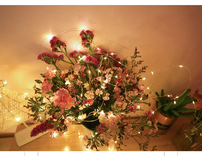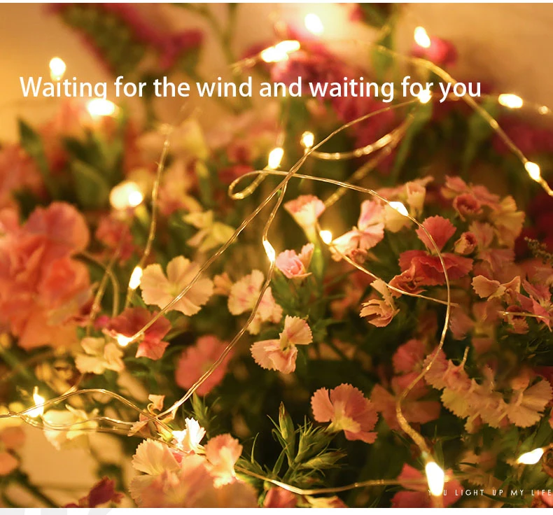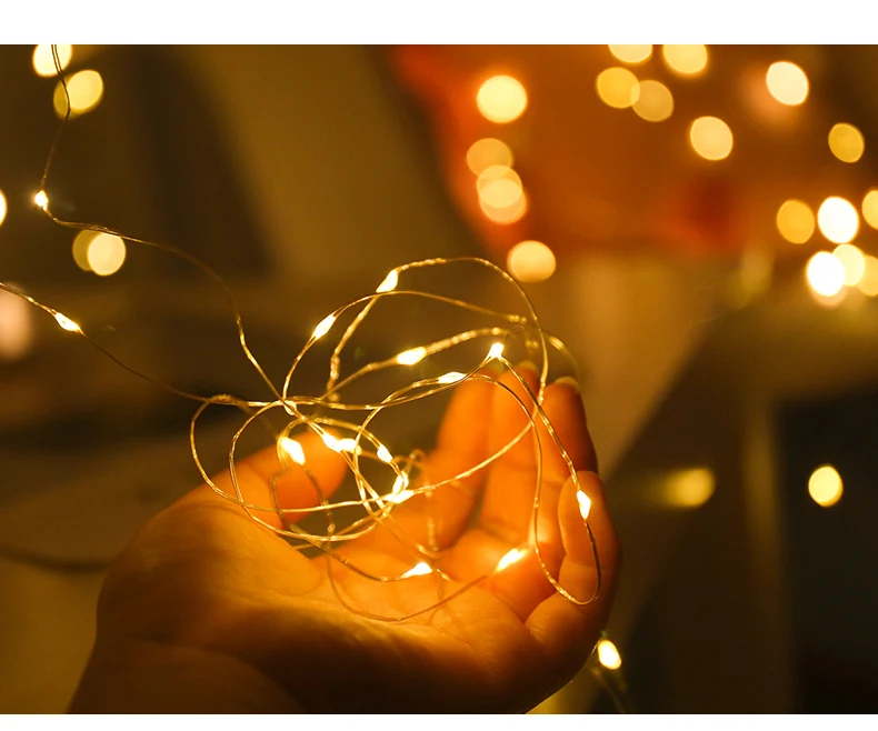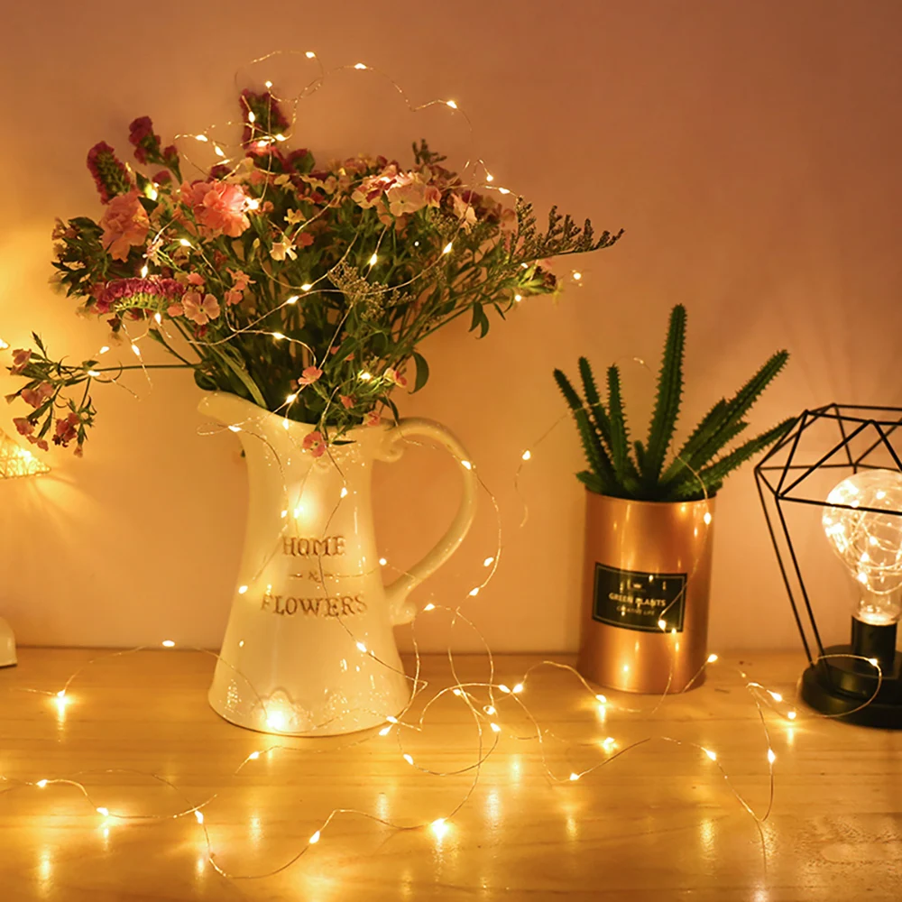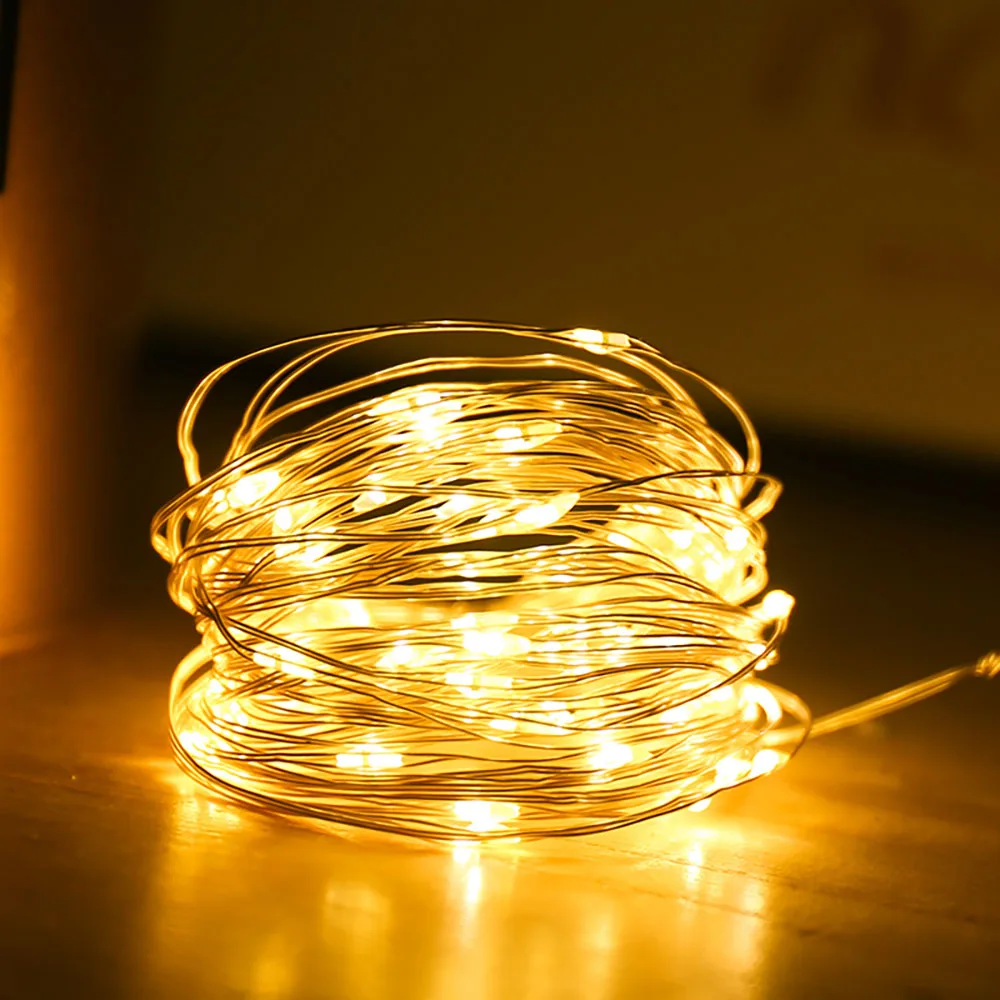 Светодиодная гирлянда на медном проводе с питанием от аккумулятора, Рождественская гирлянда, светящаяся гирлянда для дома, спальни, Нового года, сада, улицы, свадебное украшение