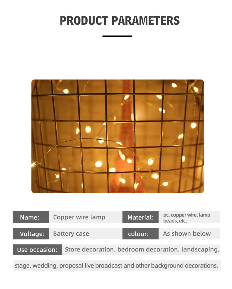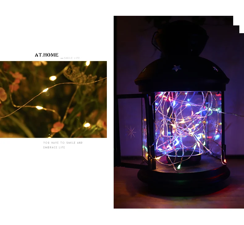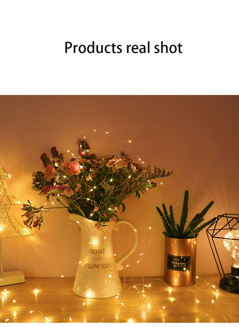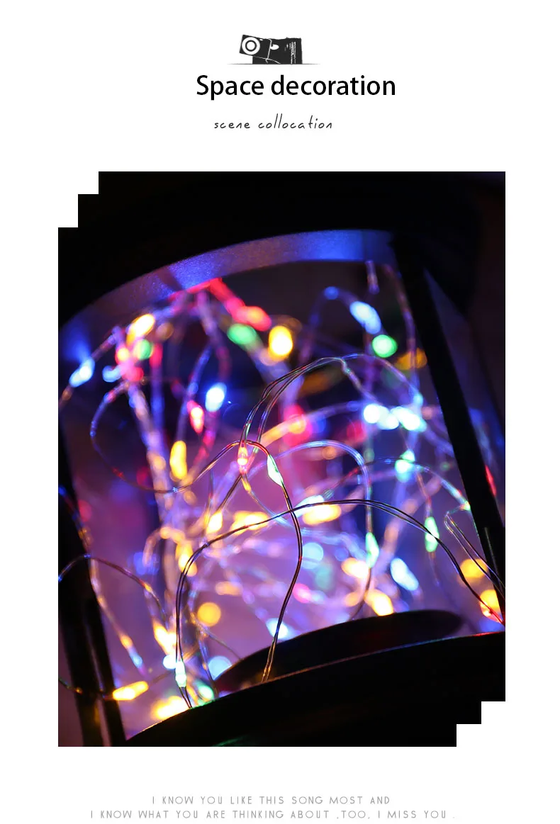 Светодиодная гирлянда на медном проводе с питанием от аккумулятора, Рождественская гирлянда, светящаяся гирлянда для дома, спальни, Нового года, сада, улицы, свадебное украшение