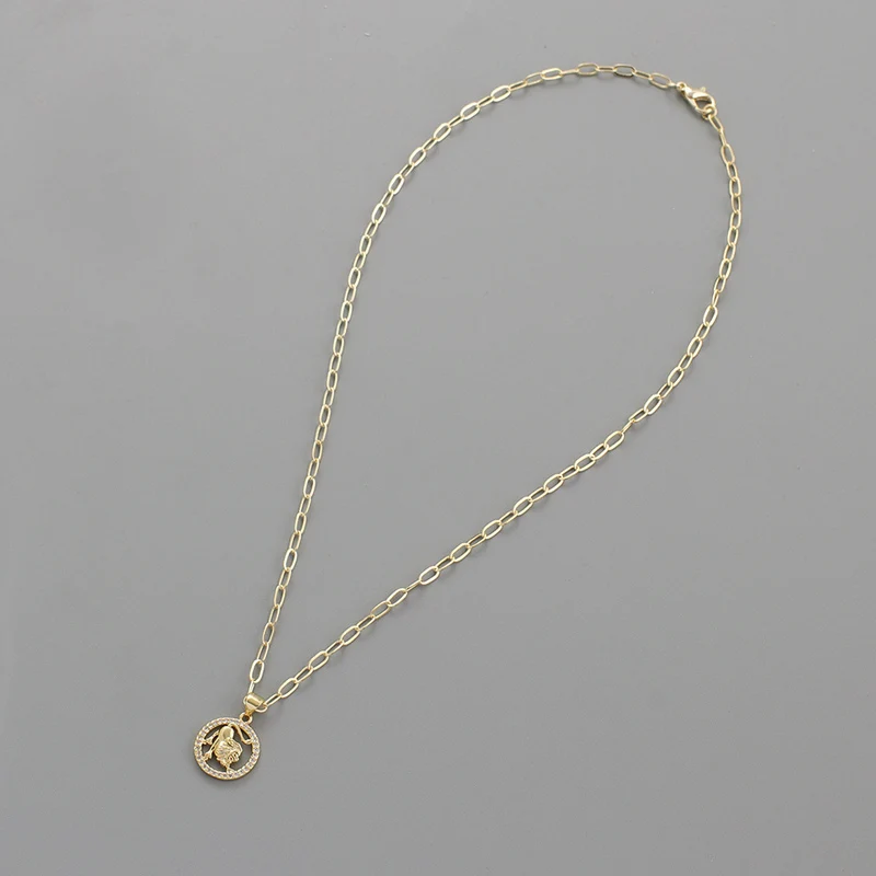 Круглый полый 12 знаков зодиака ожерелье для женщин Девушка Ретро нержавеющая сталь Золотая цепочка ожерелья созвездия циркония ювелирные изделия