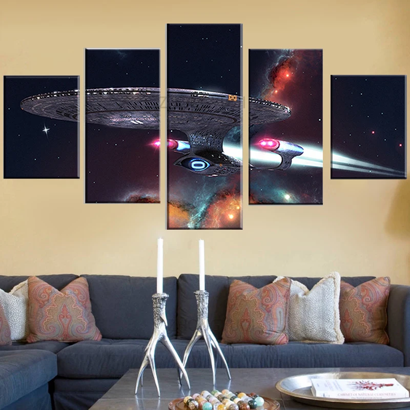 5 панелей, HD печатная картина, Звездный путь, современное искусств...