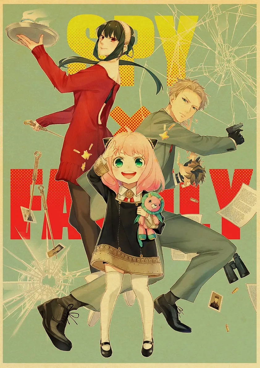 Японские популярные постеры из крафт-бумаги в стиле аниме Шпион х для всей семьи, настенные наклейки для гостиной, художественная живопись, украшение детской комнаты