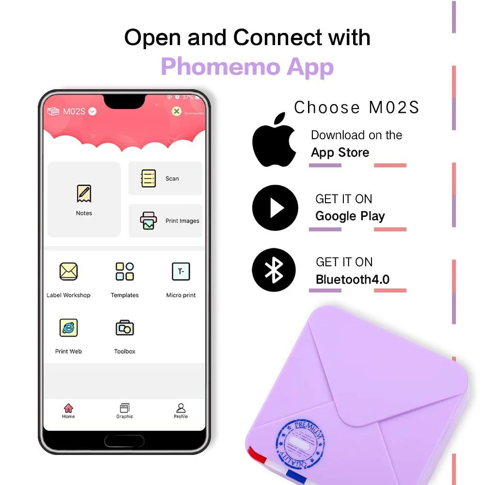 1.Phomemo M02S принтер-три размера бумаги ----- модный и компактный внешний вид, который позволяет легко положить мини портативный принтер в карман и взять его в путешествие в любом месте. Этот карманный принтер может печатать три размера (53 мм, 25 мм, 15 мм). Больше не только одного размера (53 мм).2.Phomemo портативный принтер: Высокое разрешение ----- 300 точек/дюйм HD чернильный Мини карманный принтер приносит вам совершенно новую печать изображения и текст опыта. 5V2A делает качество печати лучше, чем 5V1A. Вы можете наслаждаться фотографированием или Редактированием текста на мобильных телефонах, как вам нравится, и использовать его, чтобы сделать журнал или DIY ремесло.