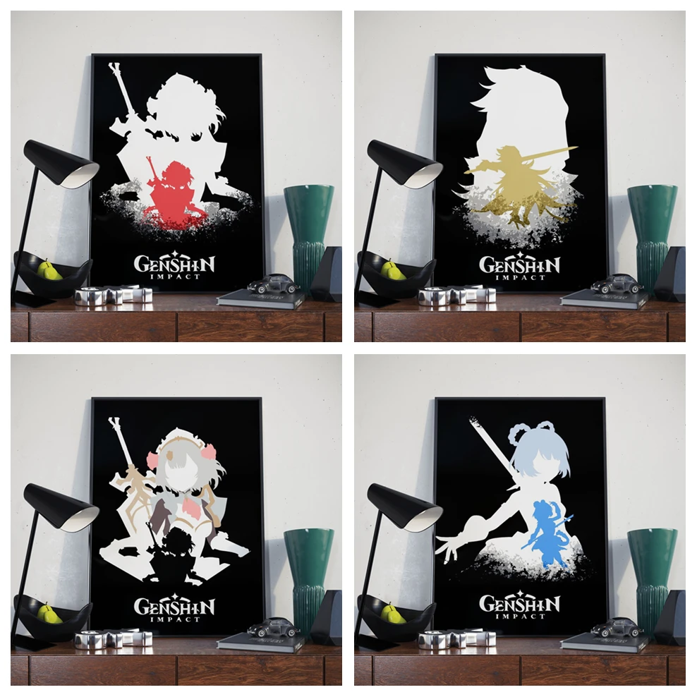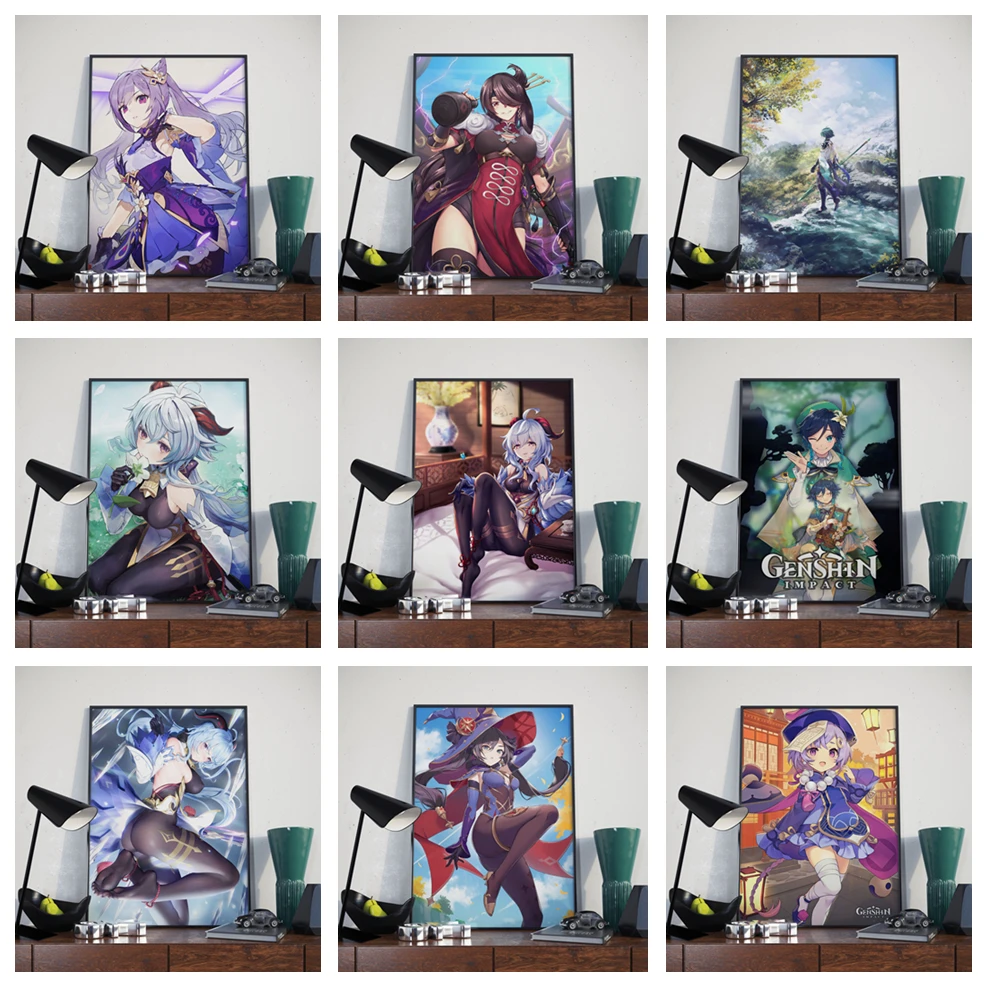 Абстрактный холщовый постер Genshin Impact, картина HD-игры, аниме девушка, настенные художественные принты, картина для спальни, гостиной, домашний декор