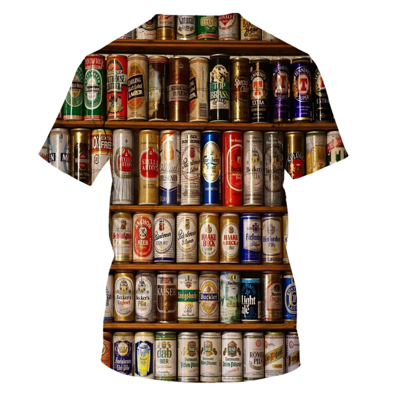 Креативная Летняя мужская и женская футболка с рисунком пива, банок, напитков, с коротким рукавом, популярная мужская футболка, Уличная Повседневная рубашка