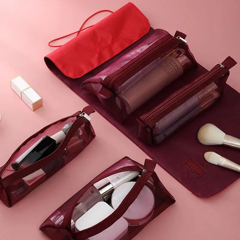 Дорожная косметичка для женщин, сетчатый футляр для косметики, Несессер для косметолога, органайзер для хранения туалетных принадлежностей, кистей для макияжа, помады