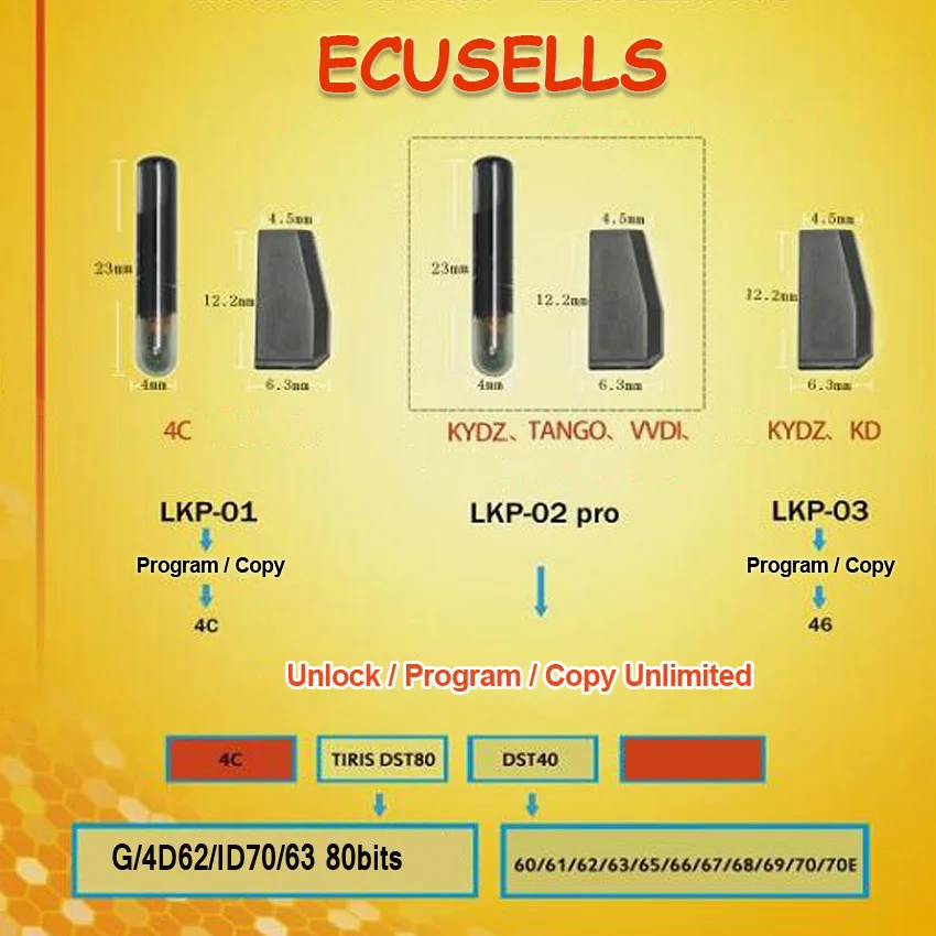 Автомобильный ключ 10 шт.лот LKP03 чип для ключа KYDZ KD программатор Can программироватьКопировать ID46 46PCF7936 чип многоразового использования