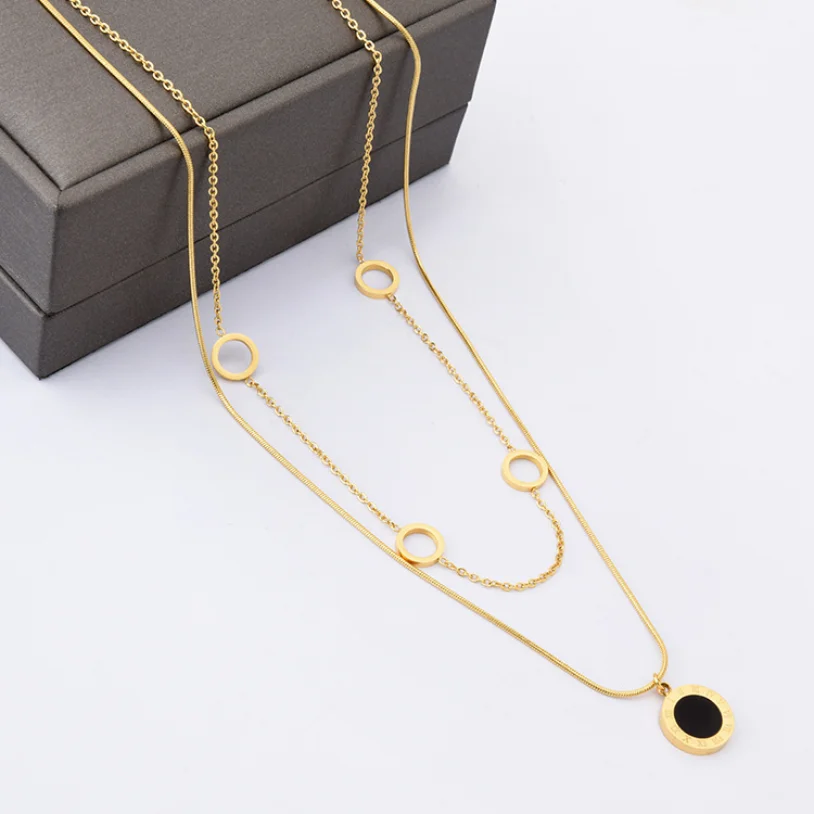 316L из нержавеющей стали новая модная Высококачественная ювелирная 2 Слои круглый римскими цифрами Подвески цепочка колье ожерелья подвески для женщин