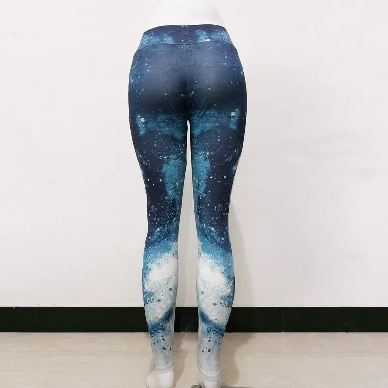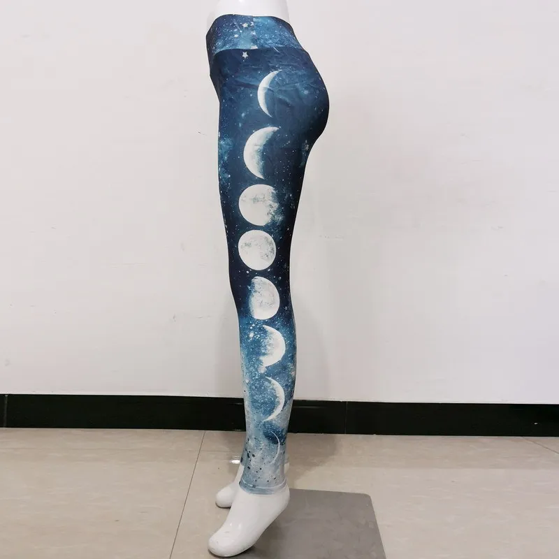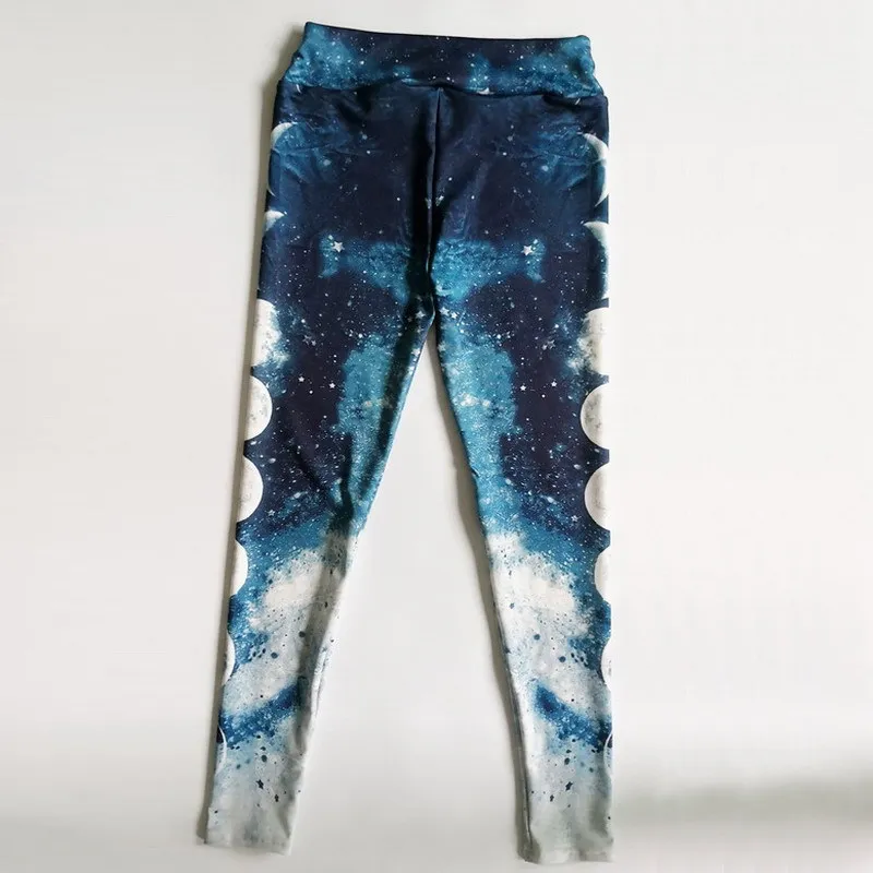 Ты мой секрет 3D Луны женские леггинсы с принтом синее звездное небо леггинсы с высокой талией с резинкой на талии; Леггинсы в виде рыбьей чешуи Большие размеры