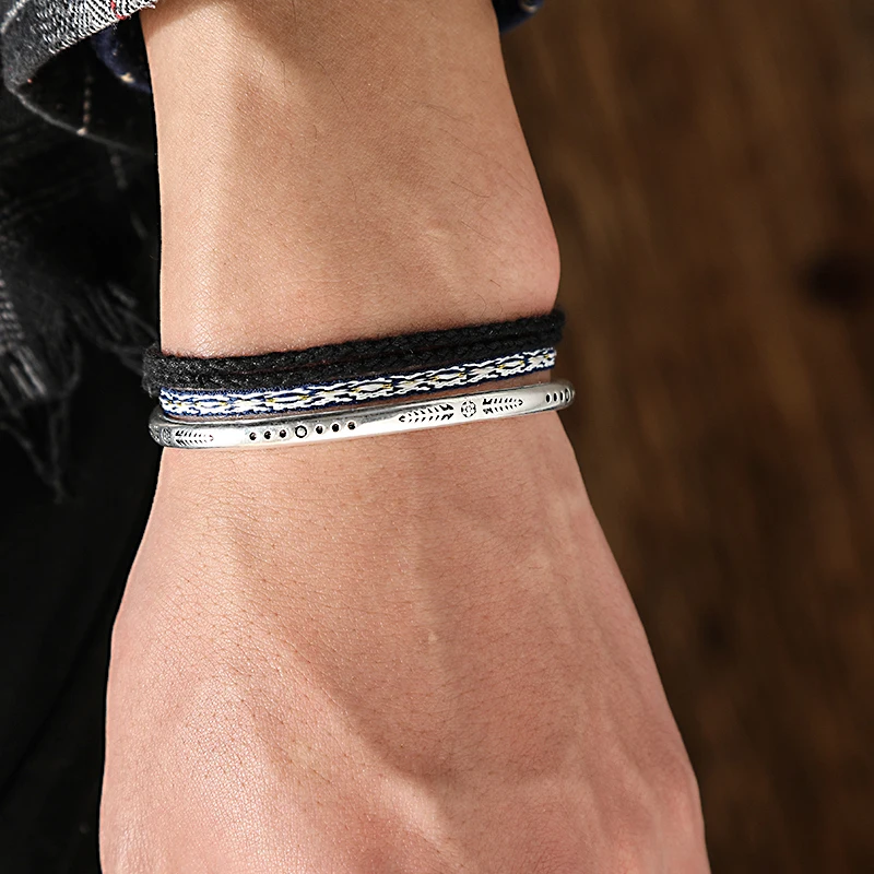 Простой Плетеный Тибетский Браслет-манжета и браслеты ручной работы серебряного цвета в этническом стиле, набор украшений, Прямая поставка