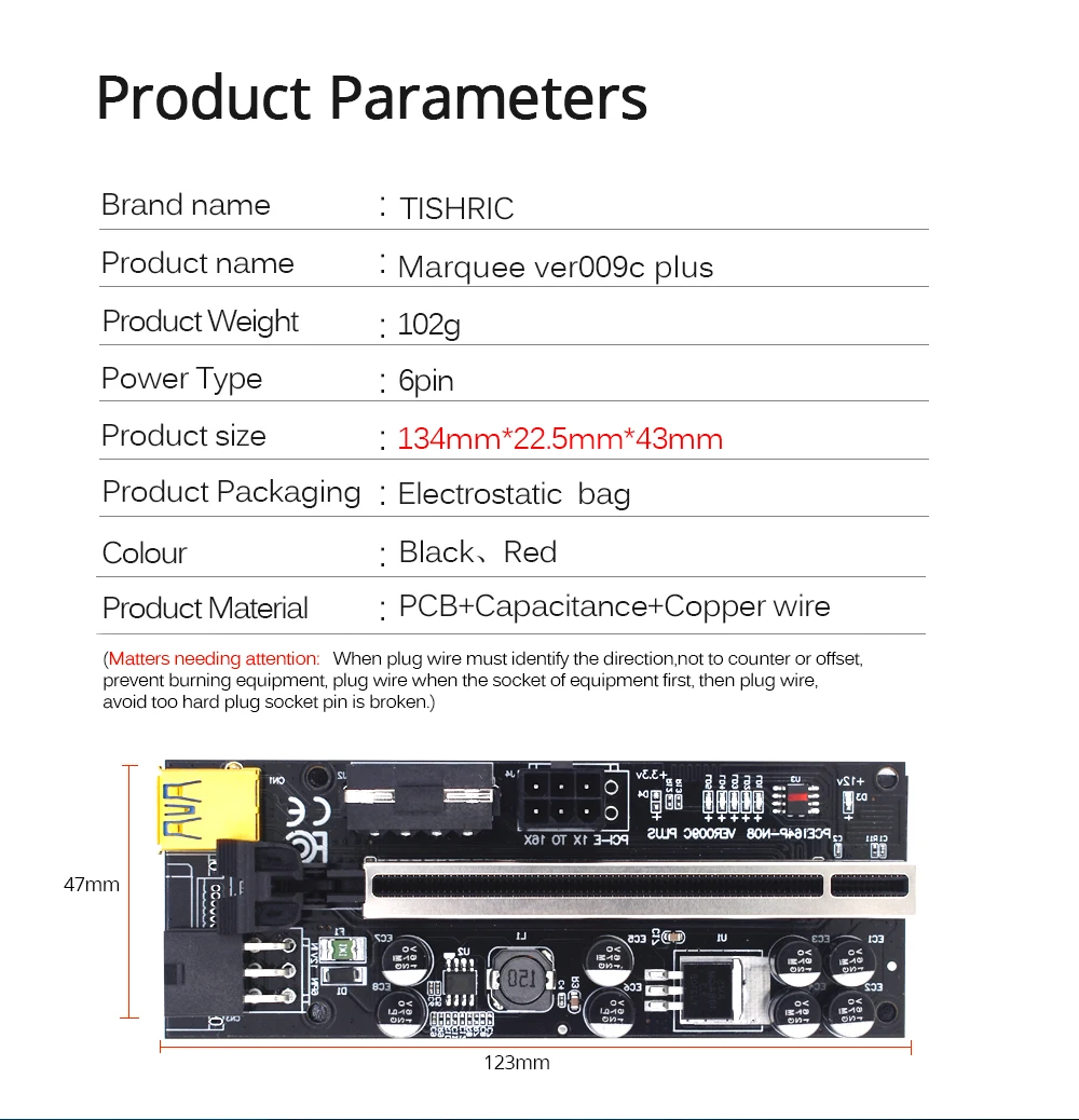 TISHRIC Riser 009C Plus gpu PCI Express 1X до 16X расширитель 6Pin ...