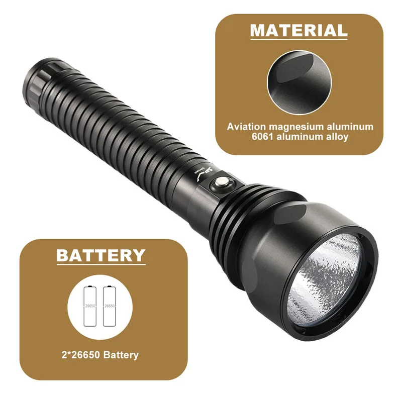 Пожалуйста, обратите внимание, что светильник для подводного плавания типа батареи 2 шт. 26650 перезаряжаемая литиевая батарея, вы можете купить на местном рынке, или купить светильник с батареей у нас.