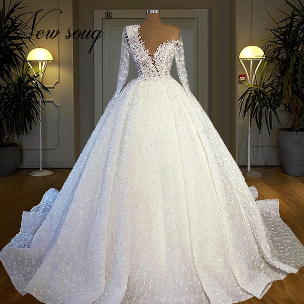 Свадебные платья принцессы с бисером, женское платье невесты с длинным шлейфом, модель 2021, свадебные платья Дубая, арабские платья невесты