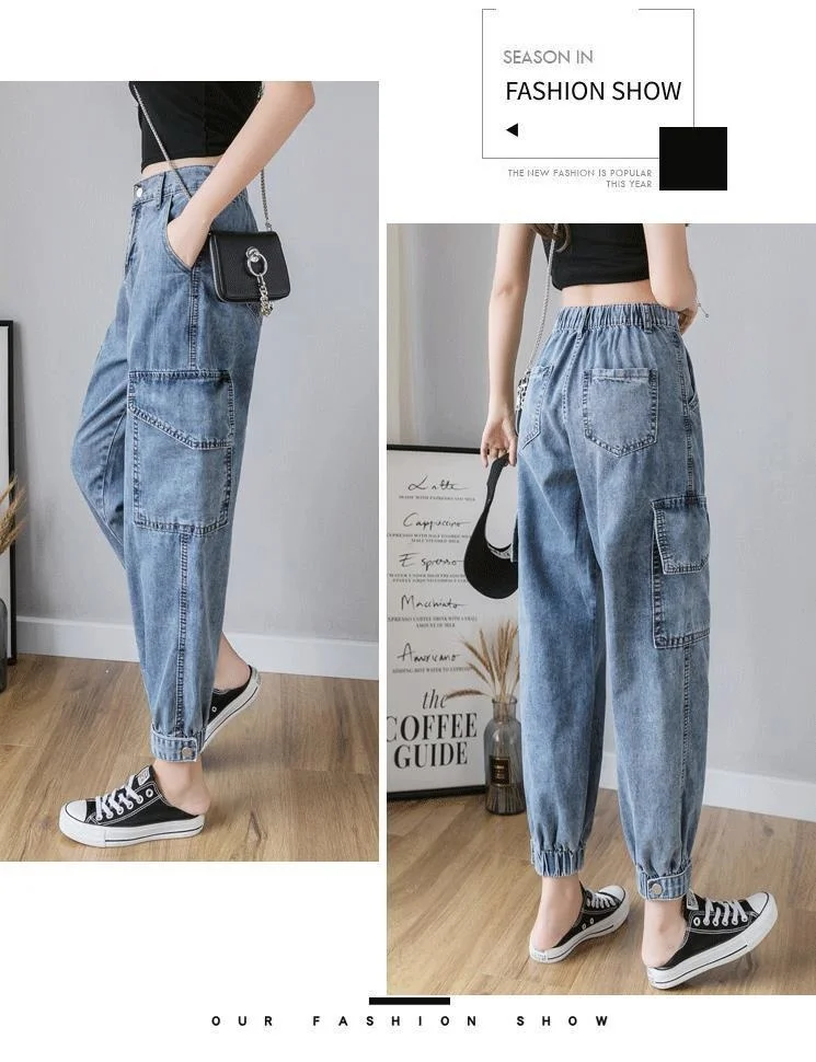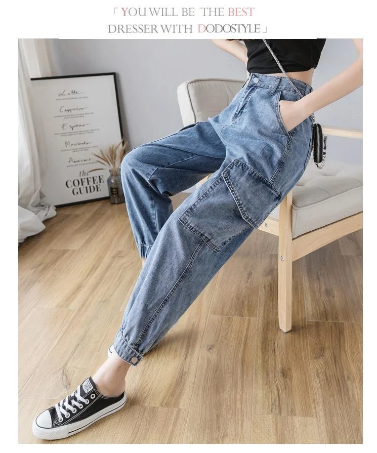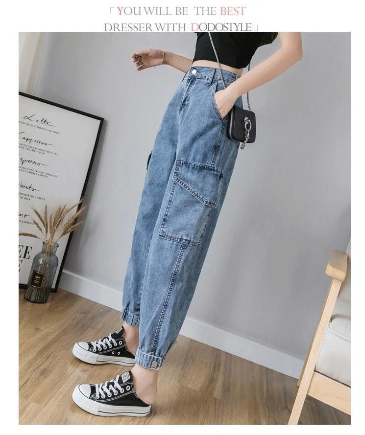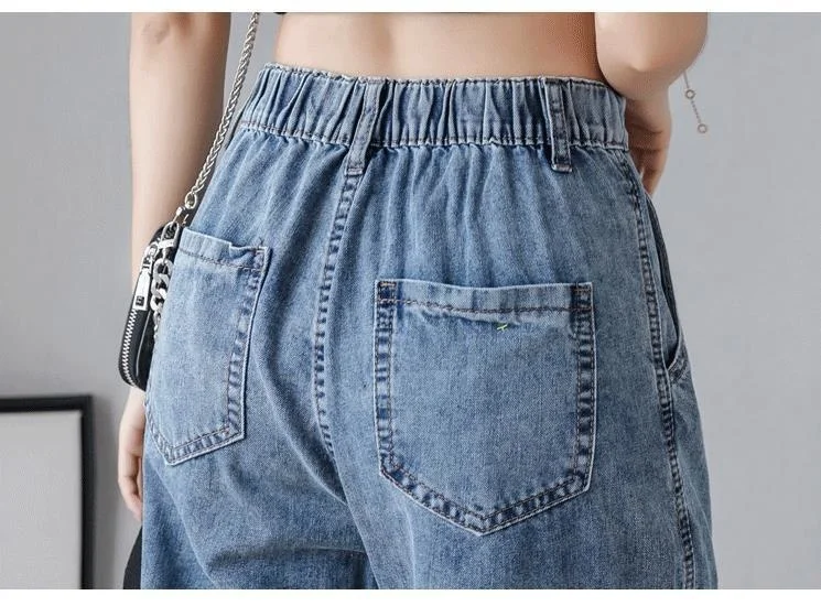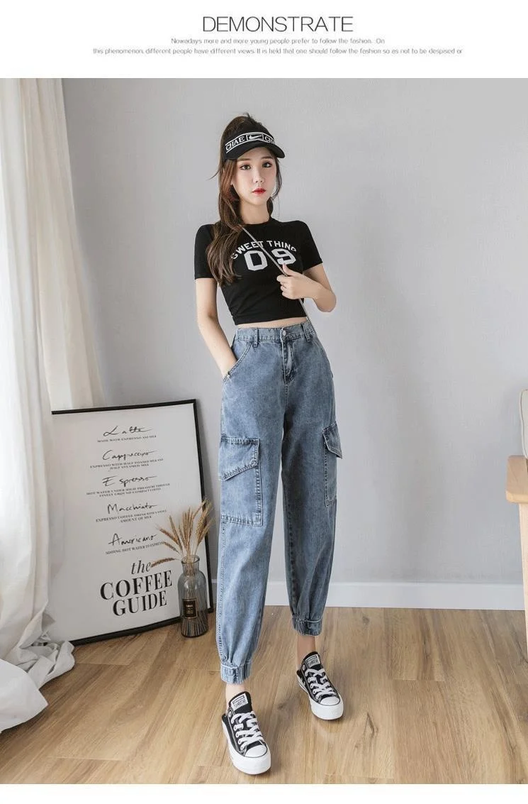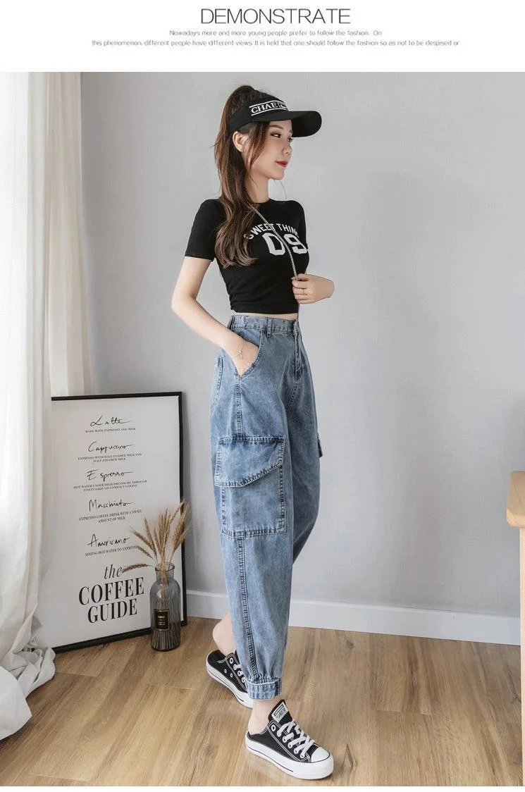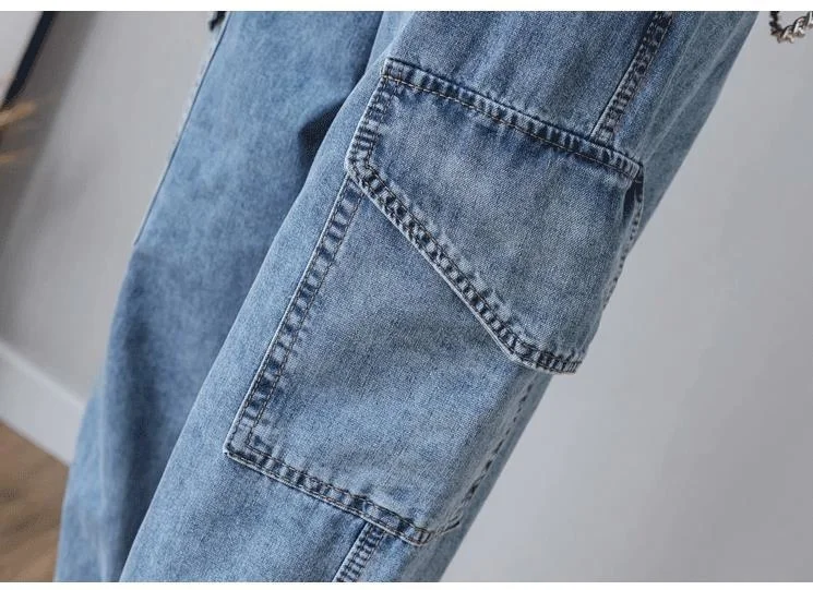 Женские джинсовые брюки, комбинезоны, женские свободные джинсы, летние брюки с ремешком на щиколотке