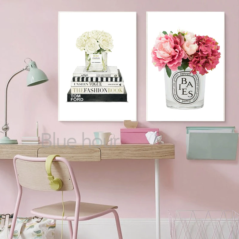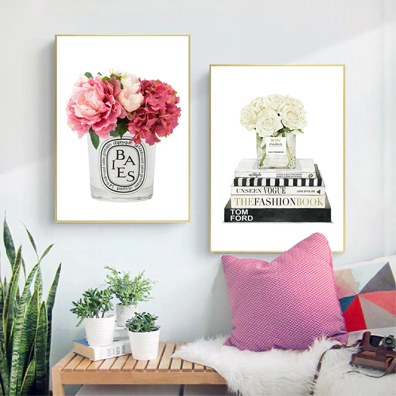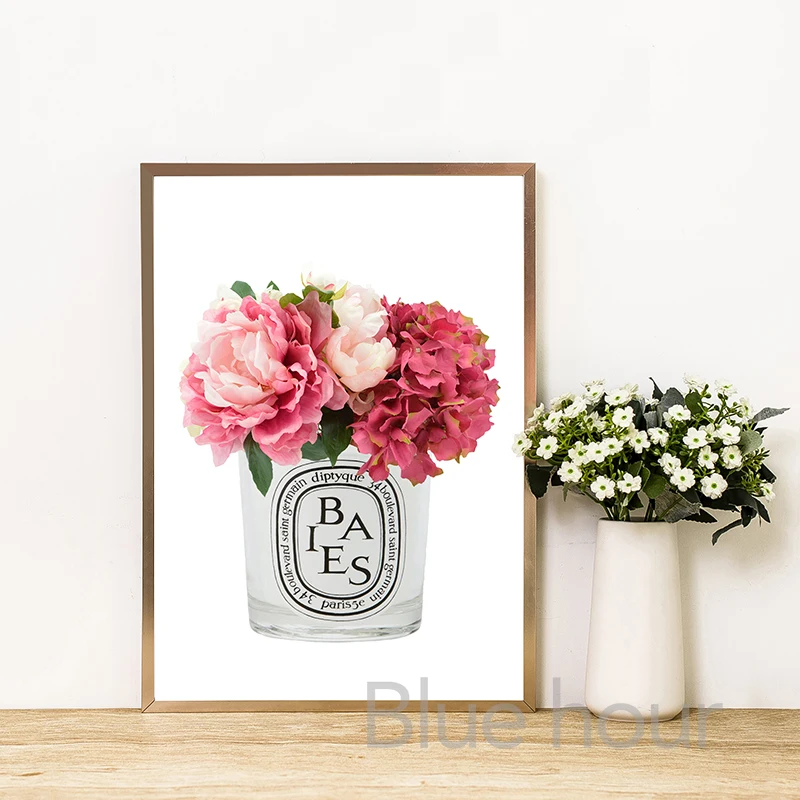 Модная ваза с пионами, цветочные принты, свечи, Акварельные картины, Сканди, настенные картины, украшения, холст, плакаты, подарки для девочек