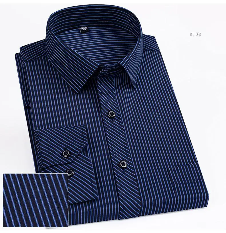 Рубашка мужская в полоску, с длинным рукавом, 5XL, 6XL