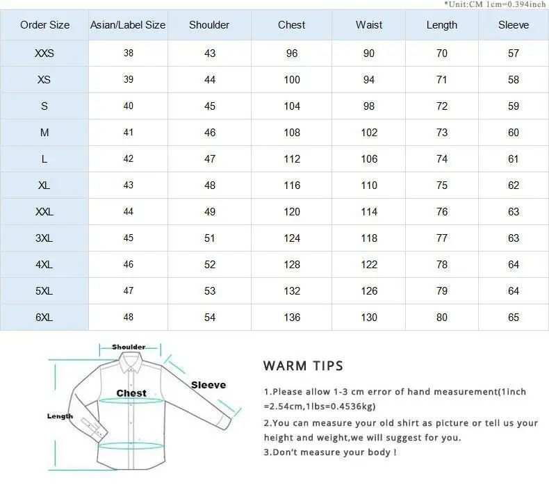 Таблица размеров только для справки, вы можете связаться с нами, если не знаете свой размер заказа