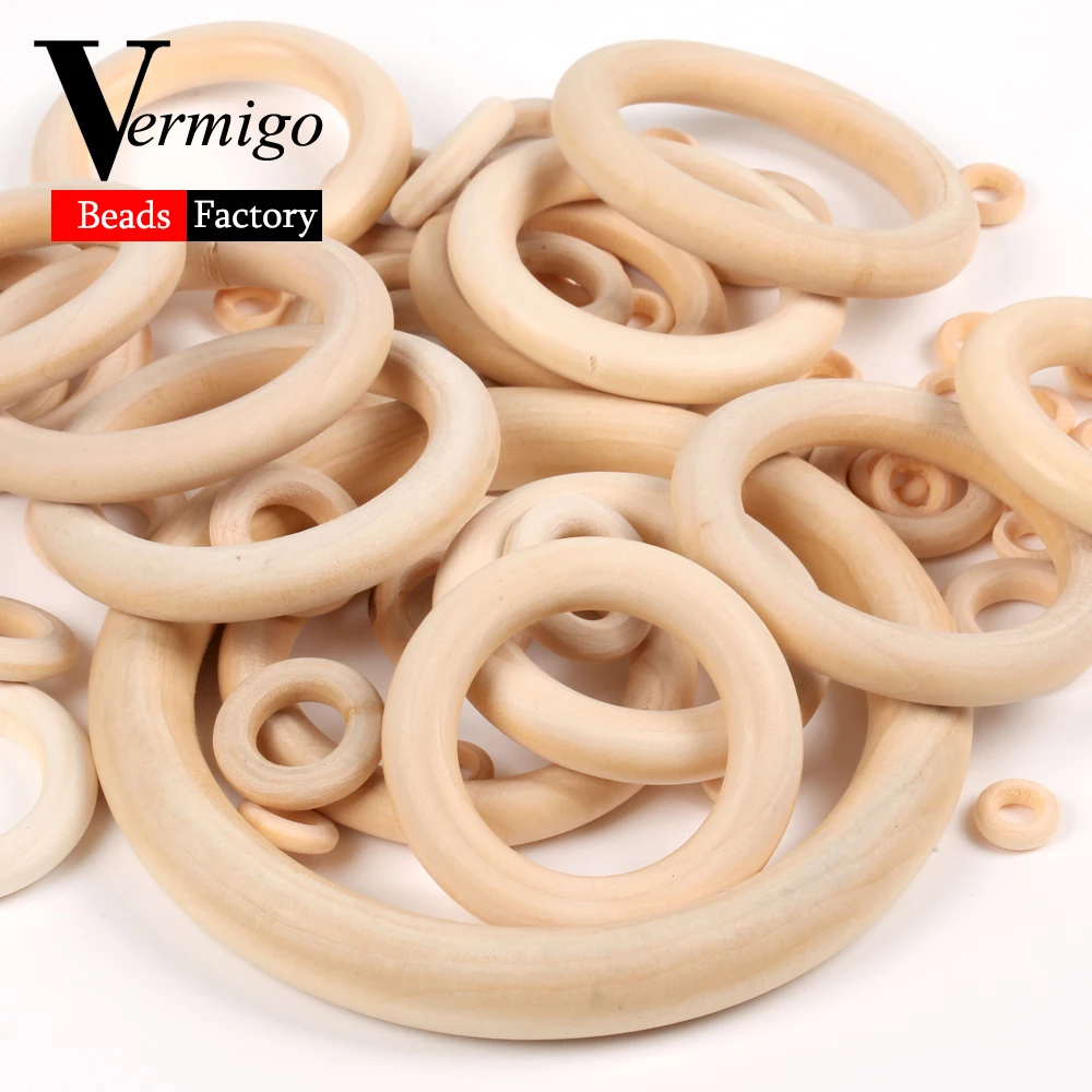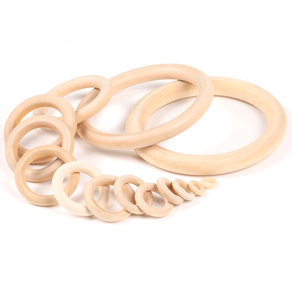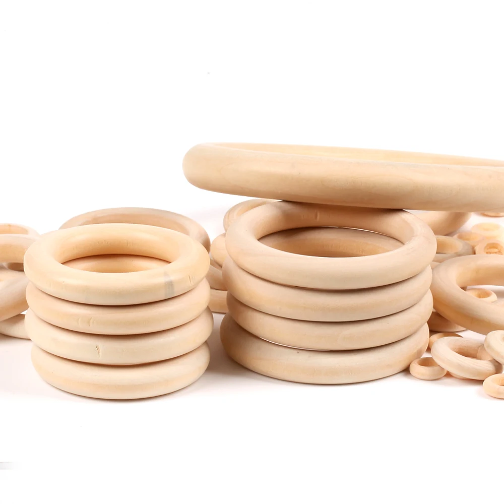 Деревянные бусины натурального цвета, Разъемы 12-125 мм, круглые кольца, деревянные бусины без свинца для изготовления ювелирных изделий, Детская цепочка для прорезывания зубов