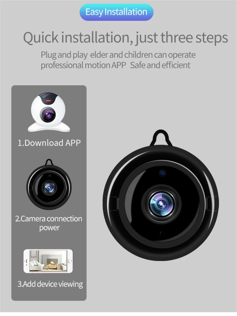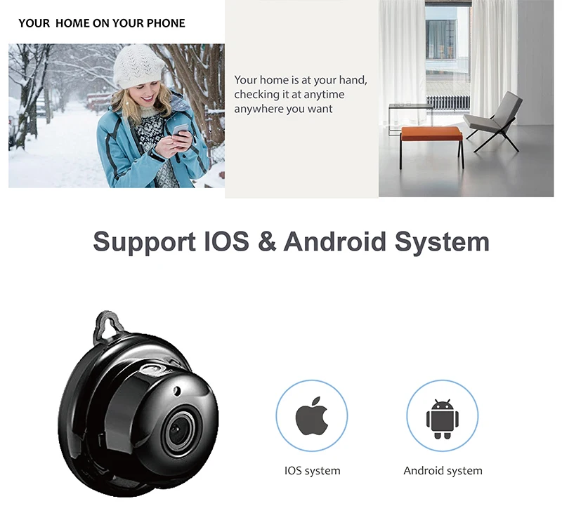 1080P Full HD приносит вам различный опыт. Эта беспроводная ip-камера позволяет просматривать в режиме реального времени то, что происходит в вашем доме или офисе, даже когда вы находитесь в отпуске или быстрой деловой поездке. Удаленный просмотр можно получить через приложение (HD WIFICAM PRO) с помощью смартфонов iOS и Android.