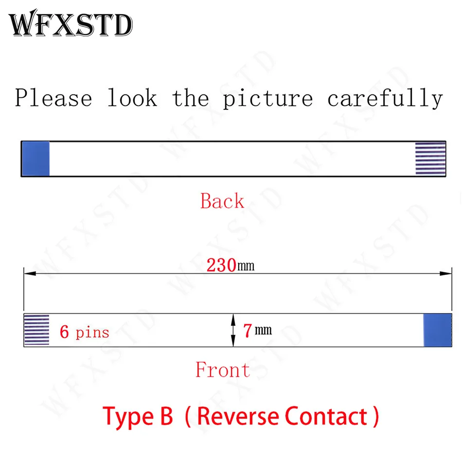 230 мм 7 мм, 6pins, Тип B Новый гибкий кабель AWM 20706 105C 60V VW-1 обратная сторона контакт
