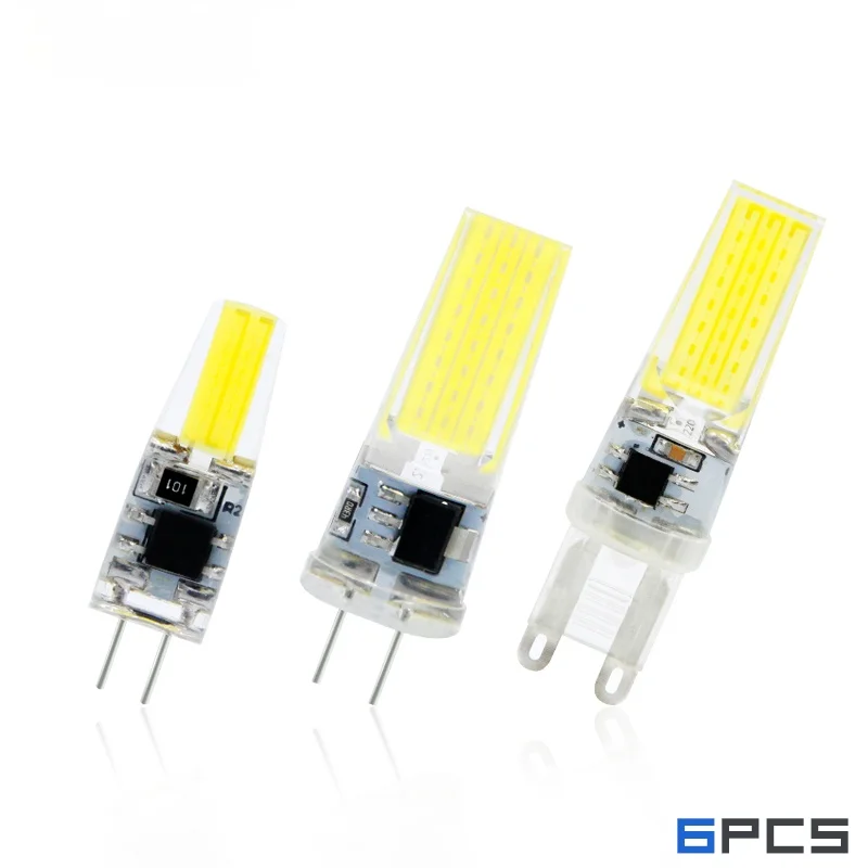 Приглушаемая Светодиодная лампа COB G4, G9, E14, ACDC, 12 В, 220 В, 6 Вт, 9 Вт, 360 градусов, сменная галогенная лампа с углом луча, освещение для люстры, 6 шт.лот