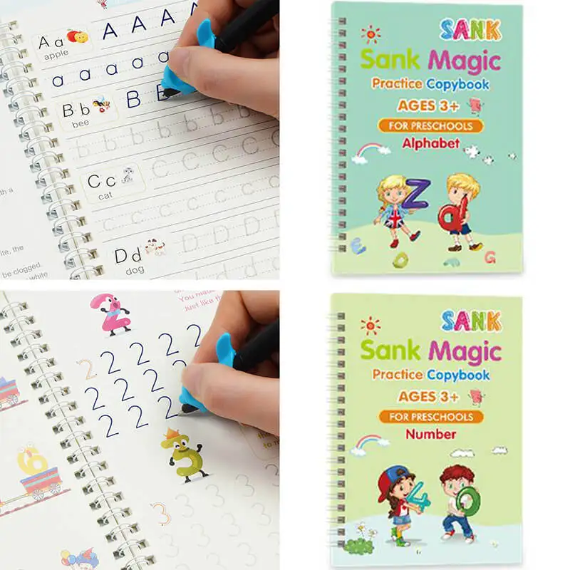 4 книги Sank Magic тетрадь для практики, многоразовая учебная книга...