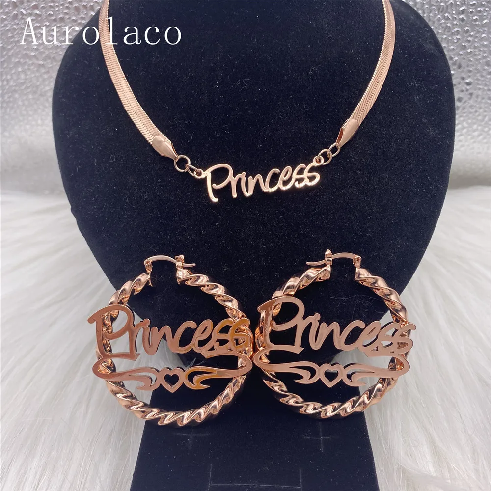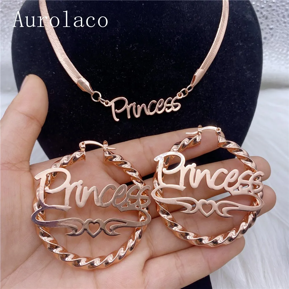 AurolaCo Ювелирный Комплект под заказ серьги с крупной нитью змеиная цепочка индивидуальное название серьги золотые серьги из нержавеющей стали для женщин Подарки