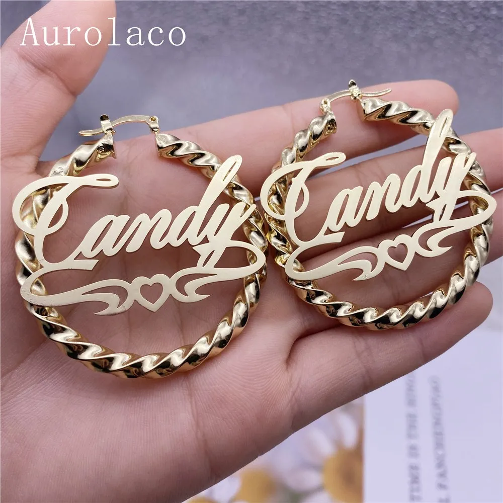 Серьги Aurolaco с именем на заказ, серьги из нержавеющей стали с ви...